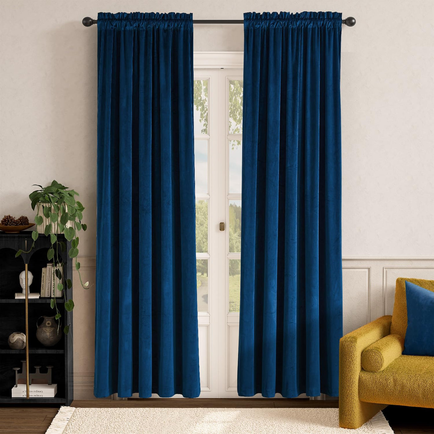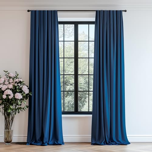 Lazzzy Navy Blue Velvet Curtains Room Darkening Thermal Insulated Curtains 84 Inch Long Window Drapes For Bedroom Living Room Super Soft Luxury Rod Pocket Window Treatment, 2 Panels
