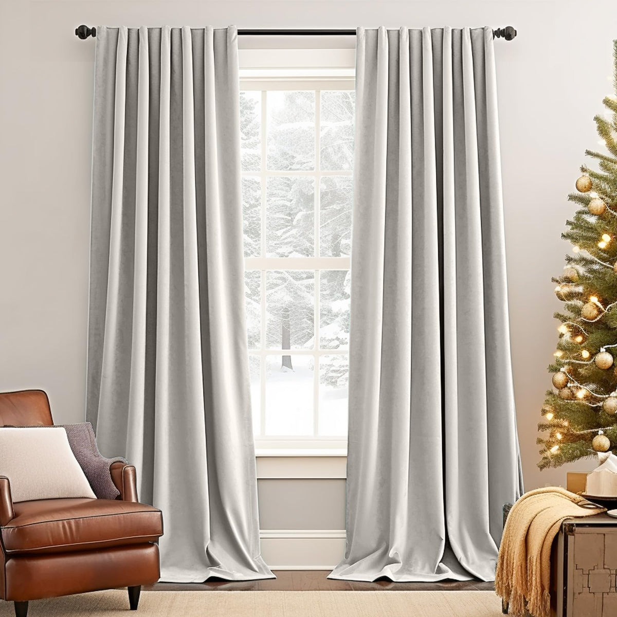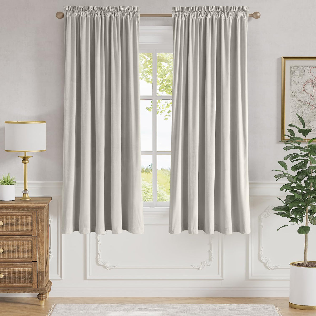 Lazzzy Oatmeal Velvet Curtains Room Darkening Thermal Insulated Curtains 72 Inch Long Window Drapes For Bedroom Living Room Super Soft Luxury Window Treatment 2 Panels Rod Pocket