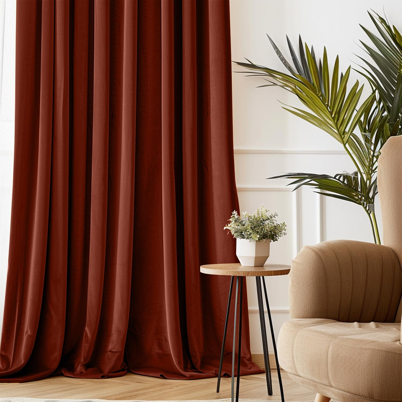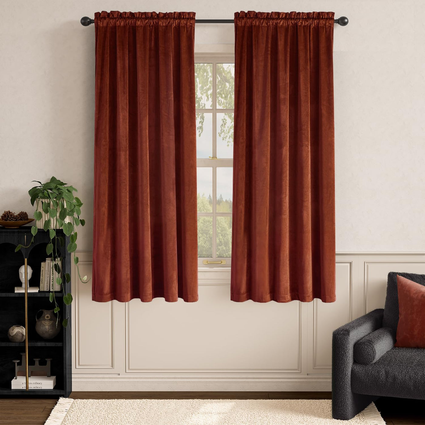 Lazzzy Orange Velvet Curtains Room Darkening Thermal Insulated Curtains 63 Inch Long Window Drapes For Bedroom Living Room Super Soft Luxury Rod Pocketwindow Treatment 2 Panels, Rust Red