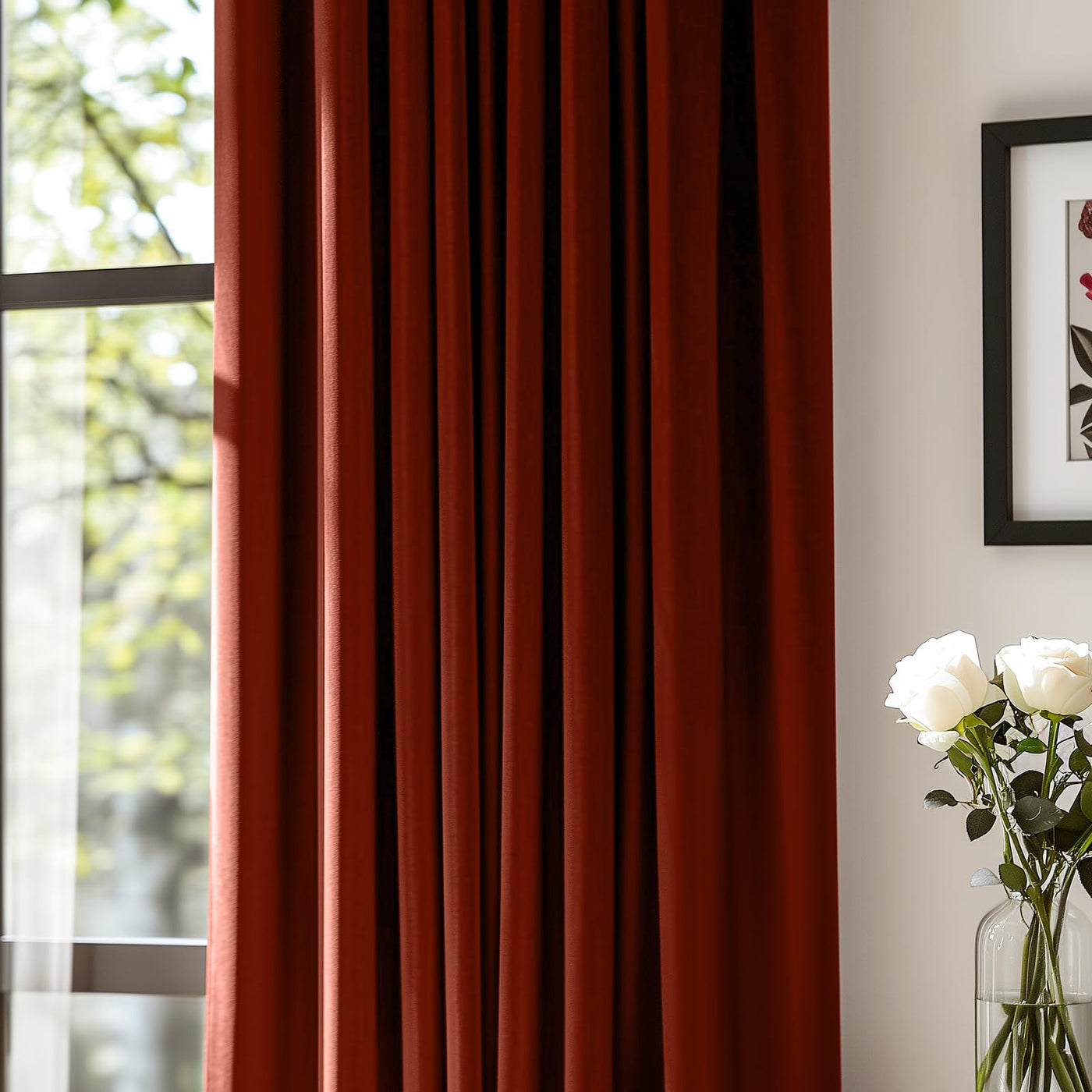 Lazzzy Orange Velvet Curtains Room Darkening Thermal Insulated Curtains 84 Inch Long Window Drapes For Bedroom Living Room Super Soft Luxury Grommet Window Treatment 2 Panels, Rust Red