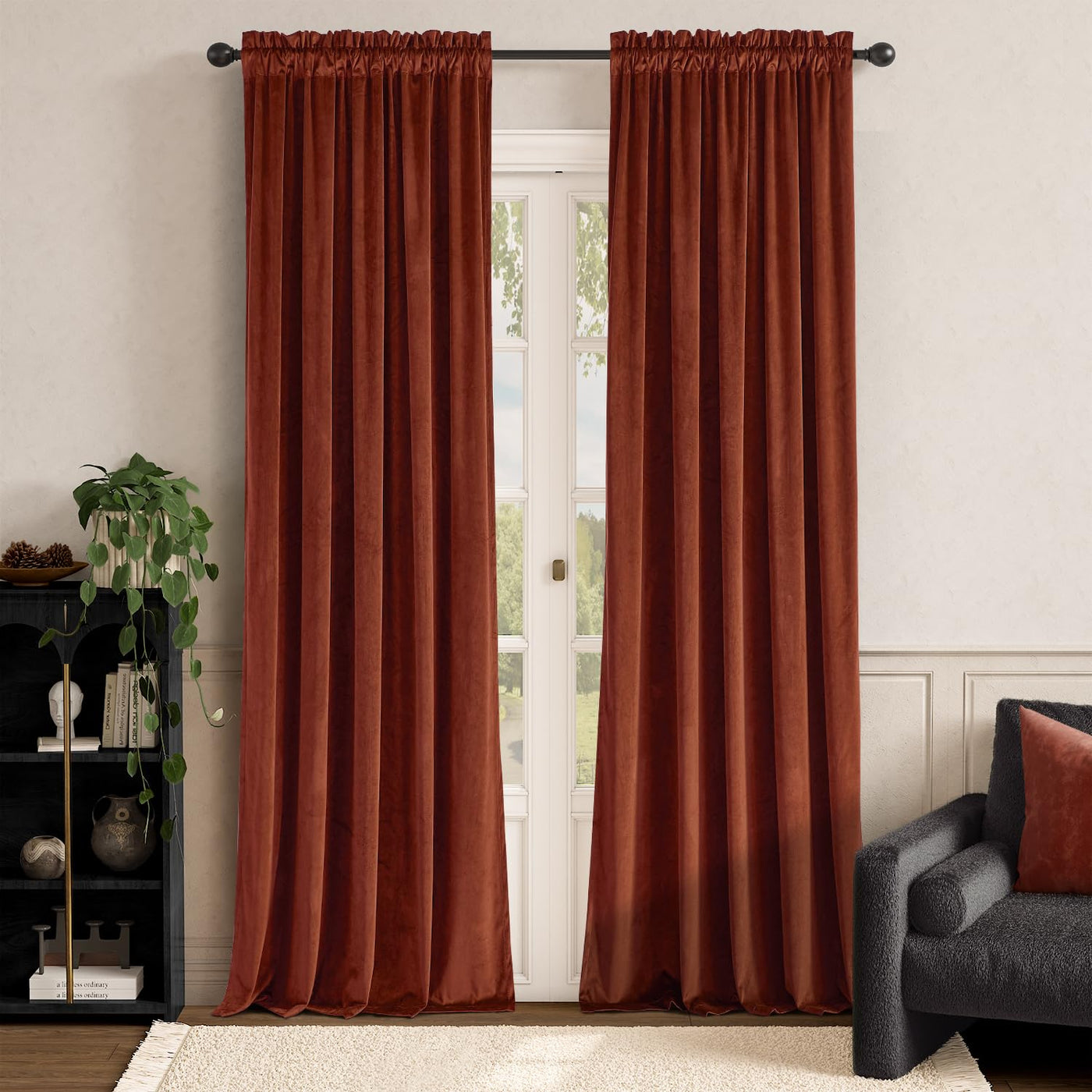 Lazzzy Orange Velvet Curtains Room Darkening Thermal Insulated Curtains 96 Inch Long Window Drapes For Bedroom Living Room Super Soft Luxury Rod Pocketwindow Treatment 2 Panels, Rust Red