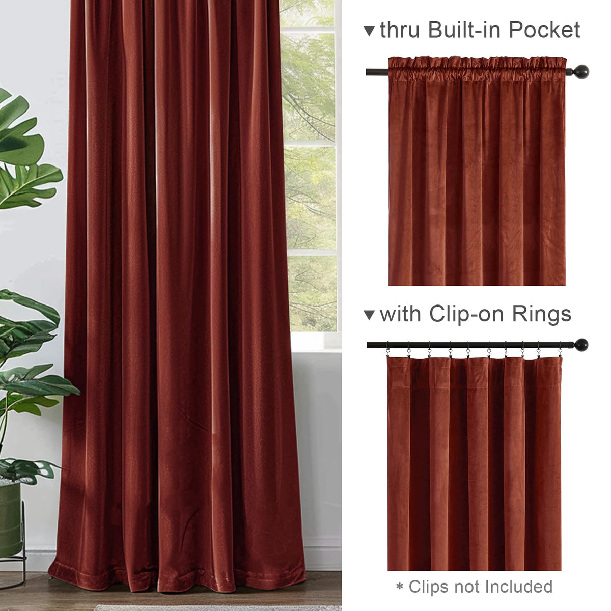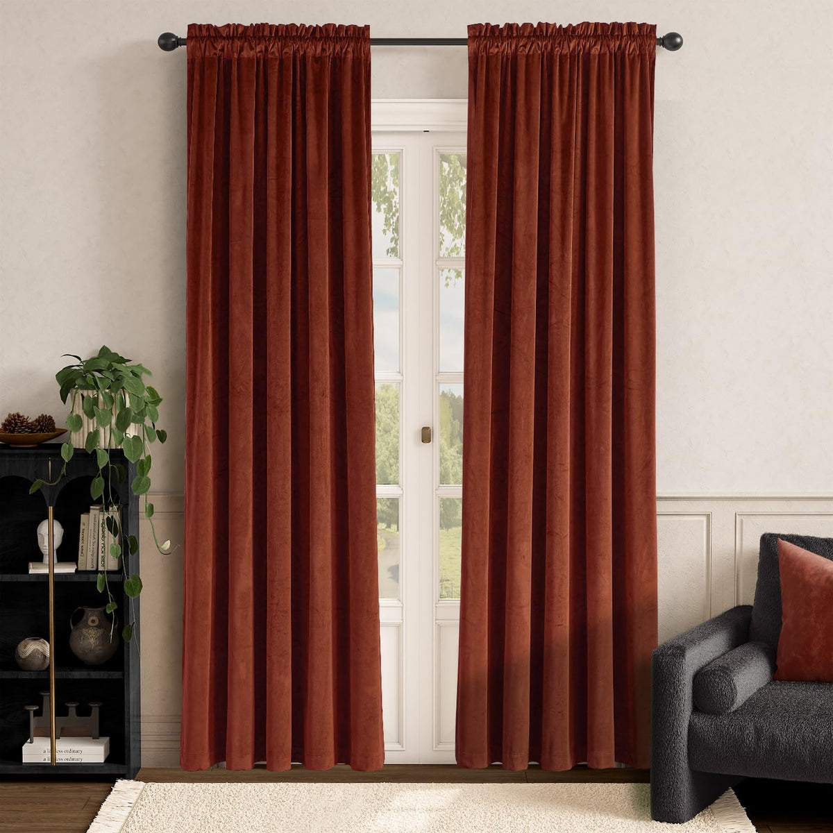 Lazzzy Rust Red Velvet Curtains Room Darkening Thermal Insulated Curtains 90 Inch Length Window Drapes For Bedroom Living Room Super Soft Luxury Rod Pocketwindow Treatment 2 Panels