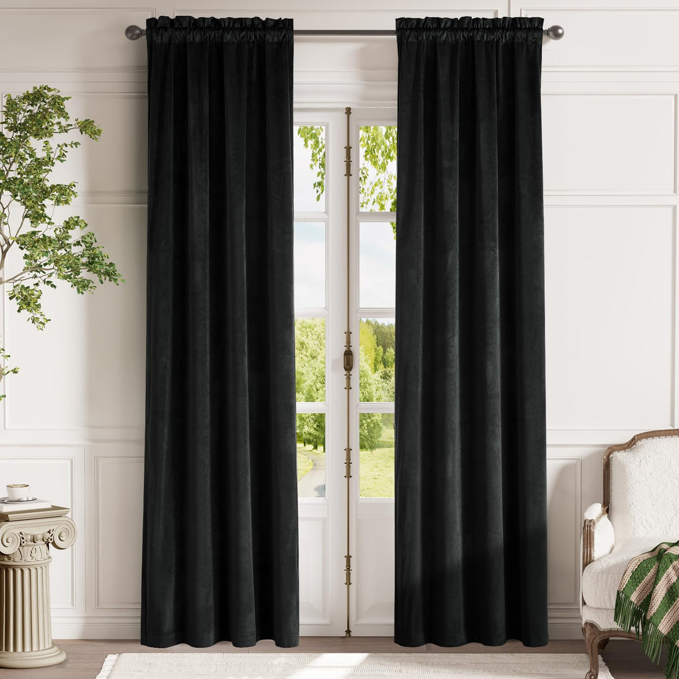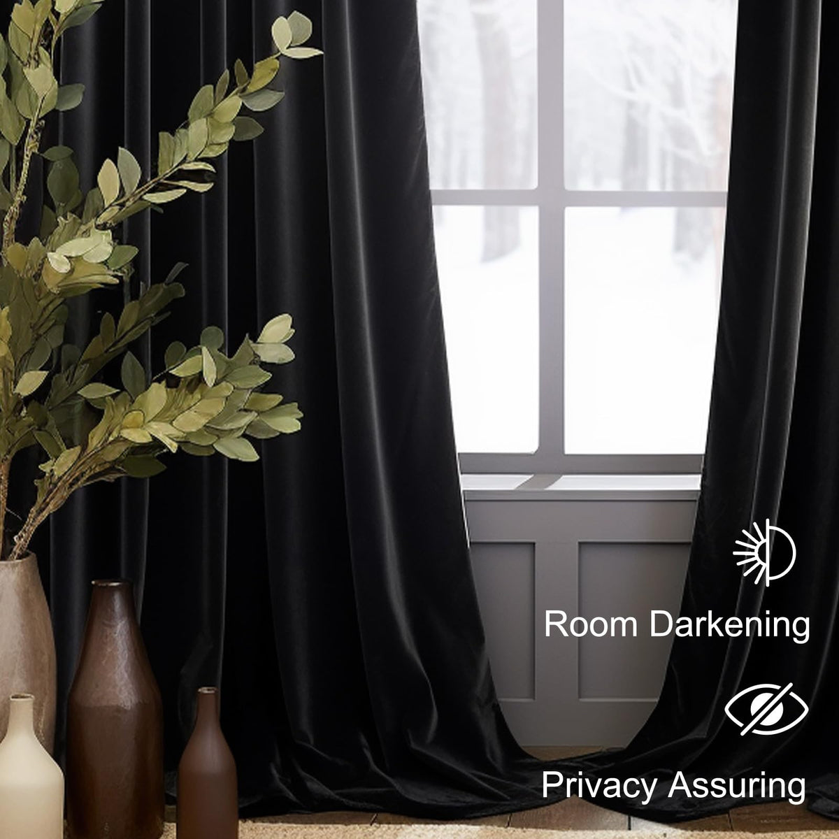 Lazzzy Velvet Black Curtains 90 Inches Long Thermal Insulated Drapes For Bedroom Living Room Darkening Window Treatments Rod Pocket 2 Panels, W42 X L90