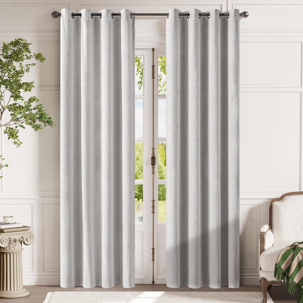 Lazzzy Velvet Blackout Curtains Light Gray Thermal Insulated Curtains Soundproof Noise Reducing Drapes For Bedroom Living Room Darkening Privacy Home Decor Grommet 90 Inch Length 2 Panels