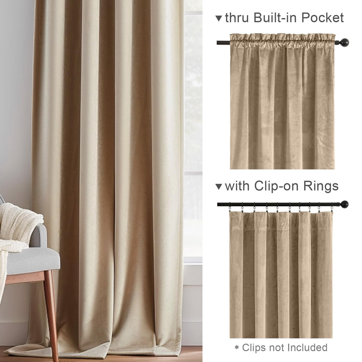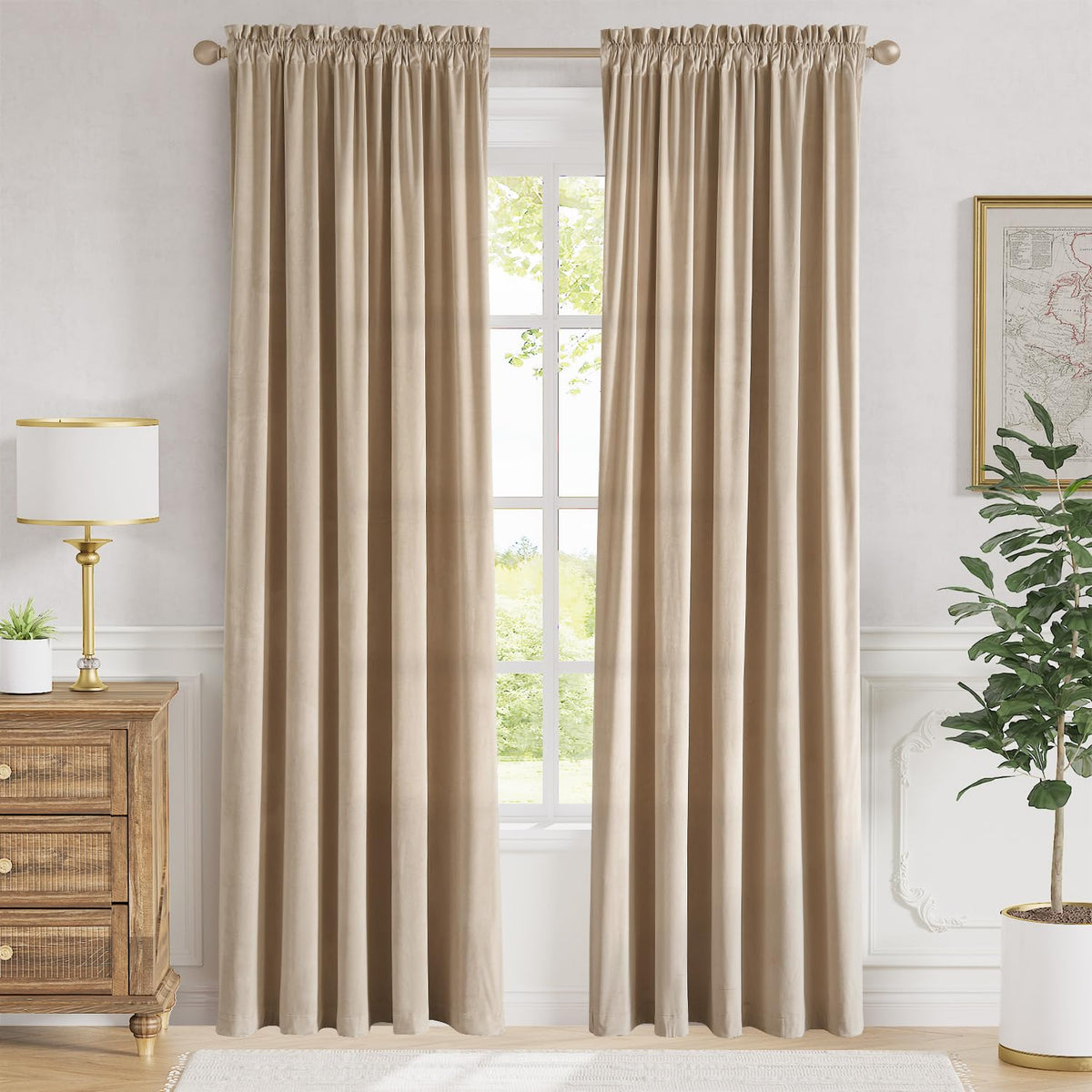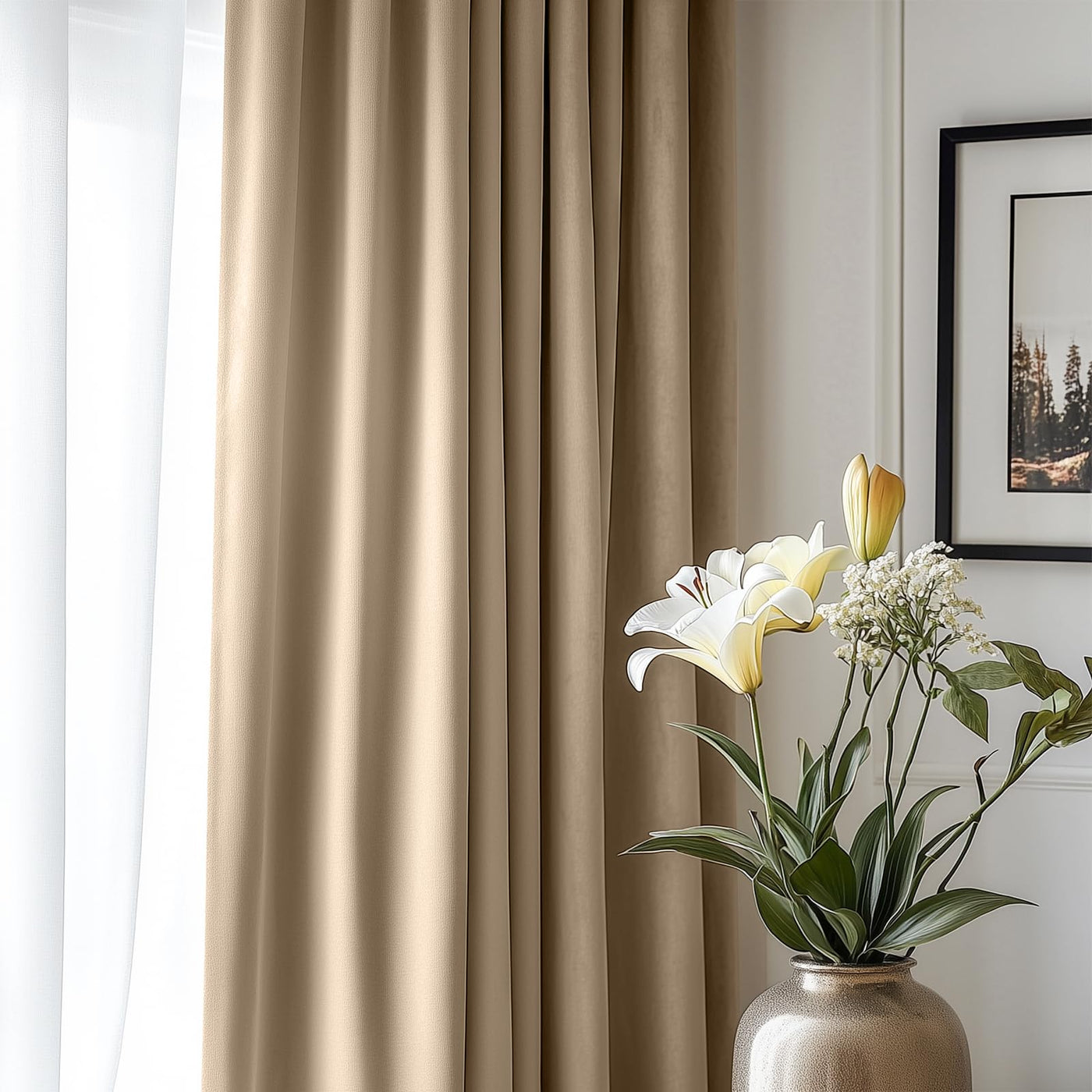 Lazzzy Velvet Curtain Beige Thermal Insulated Curtains 90 Inch Long Drapes For Bedroom Living Room Darkening Window Treatments Rod Pocket, Set Of 2, Latte