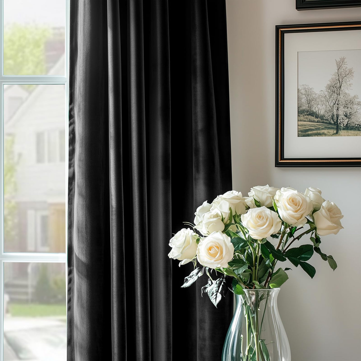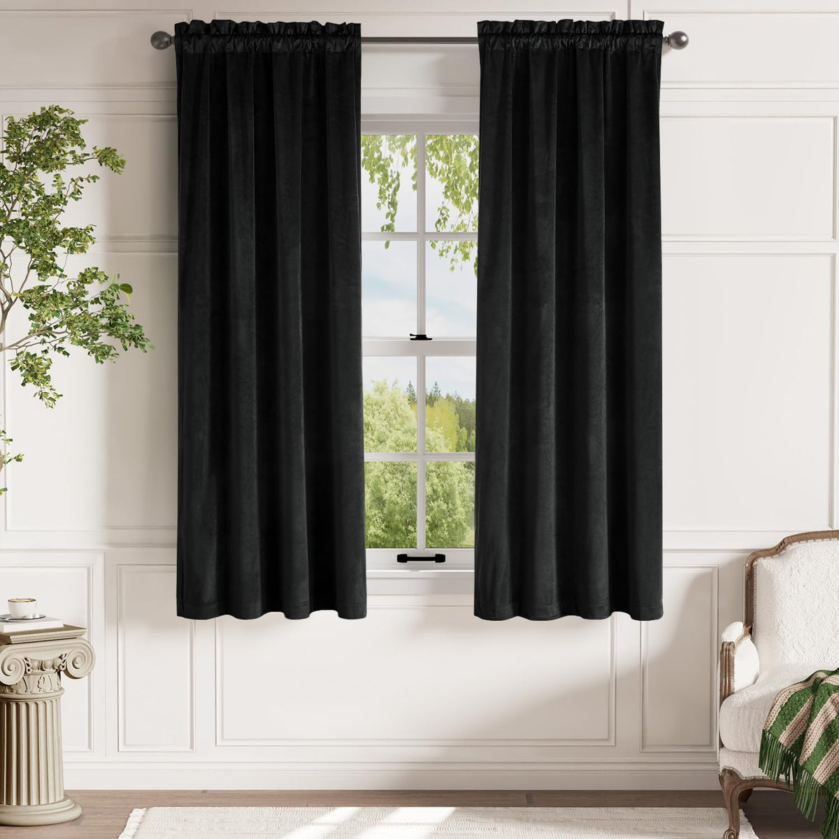 Lazzzy Velvet Curtains Black Thermal Insulated Drapes For Bedroom Living Room Darkening Window Treatments Luxury Rod Pocket 72 Inches Long 2 Panels, W42 X L72