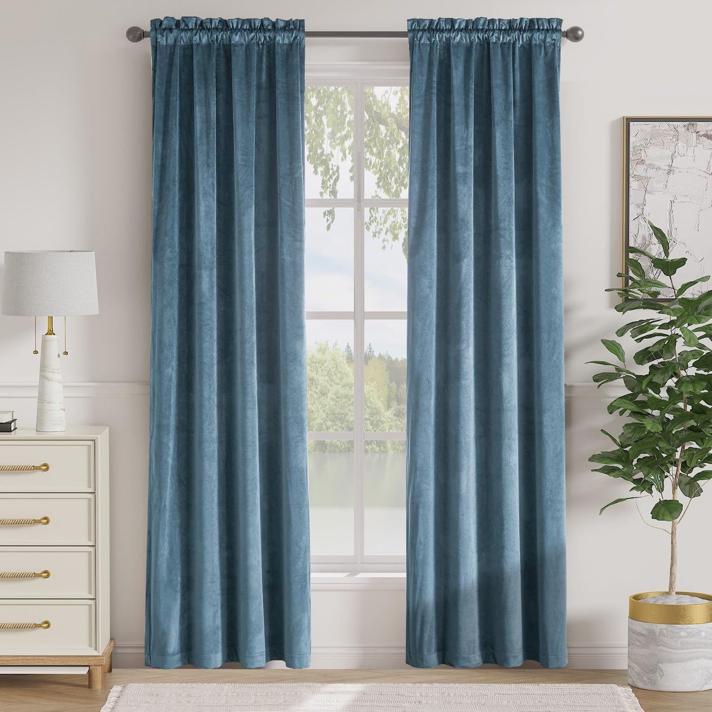 Lazzzy Velvet Curtains Blue Room Darkening Curtains Drapes For Bedroom Living Privacy Home Decor Rod Pocket 84 Inch Length 2 Panels, Dark Slate, W42 X L84