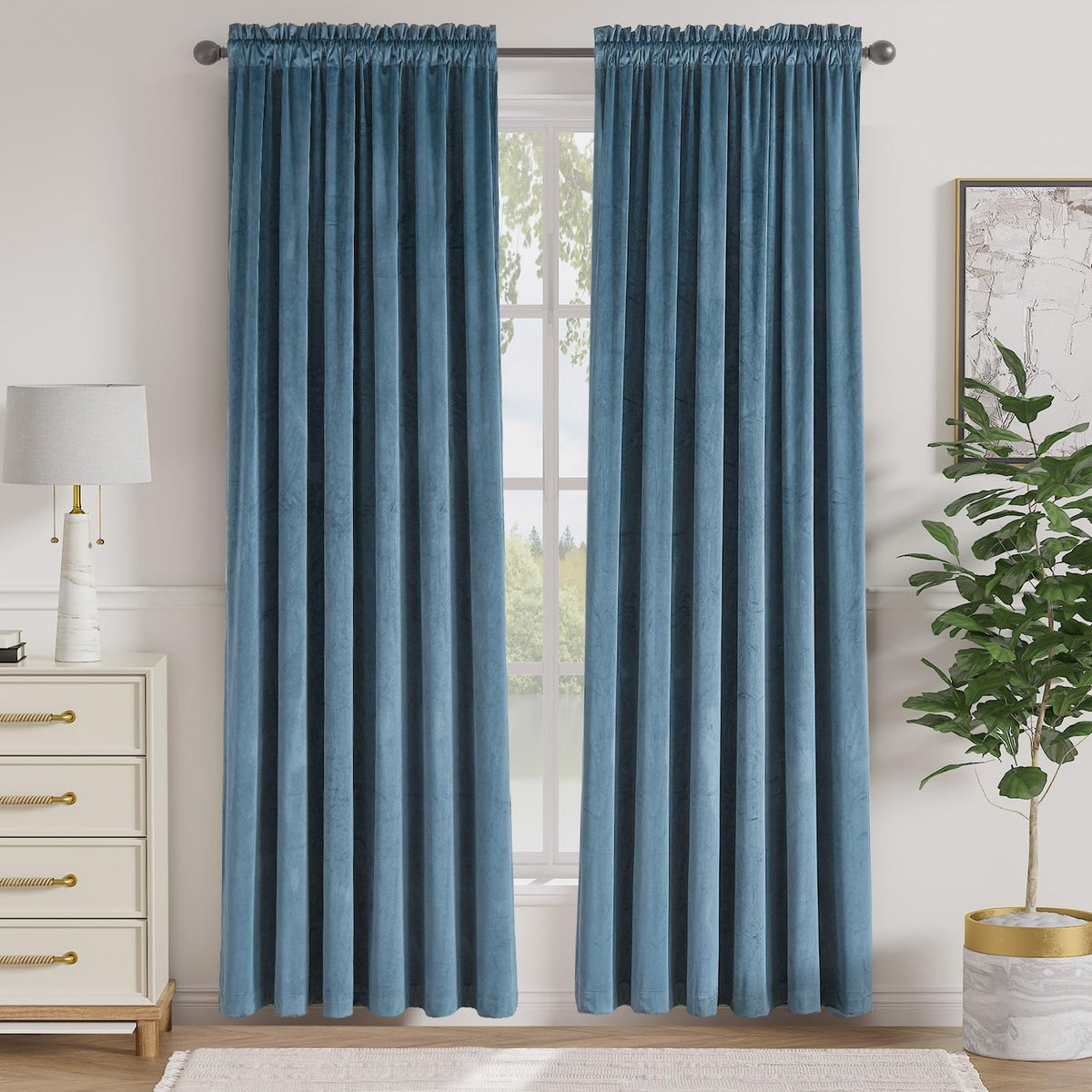 Lazzzy Velvet Curtains Blue Room Darkening Curtains Drapes For Bedroom Living Privacy Home Decor Rod Pocket 84 Inch Length 2 Panels, Dark Slate, W62 X L84