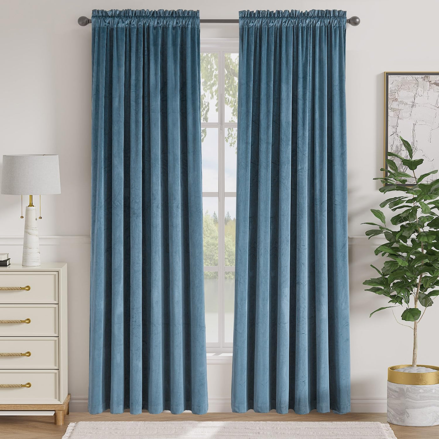 Lazzzy Velvet Curtains Blue Room Darkening Drapes For Bedroom Living Window Treatments Luxury Rod Pocket 90 Inches Long 2 Panels, Dark Slate, W62 X L90