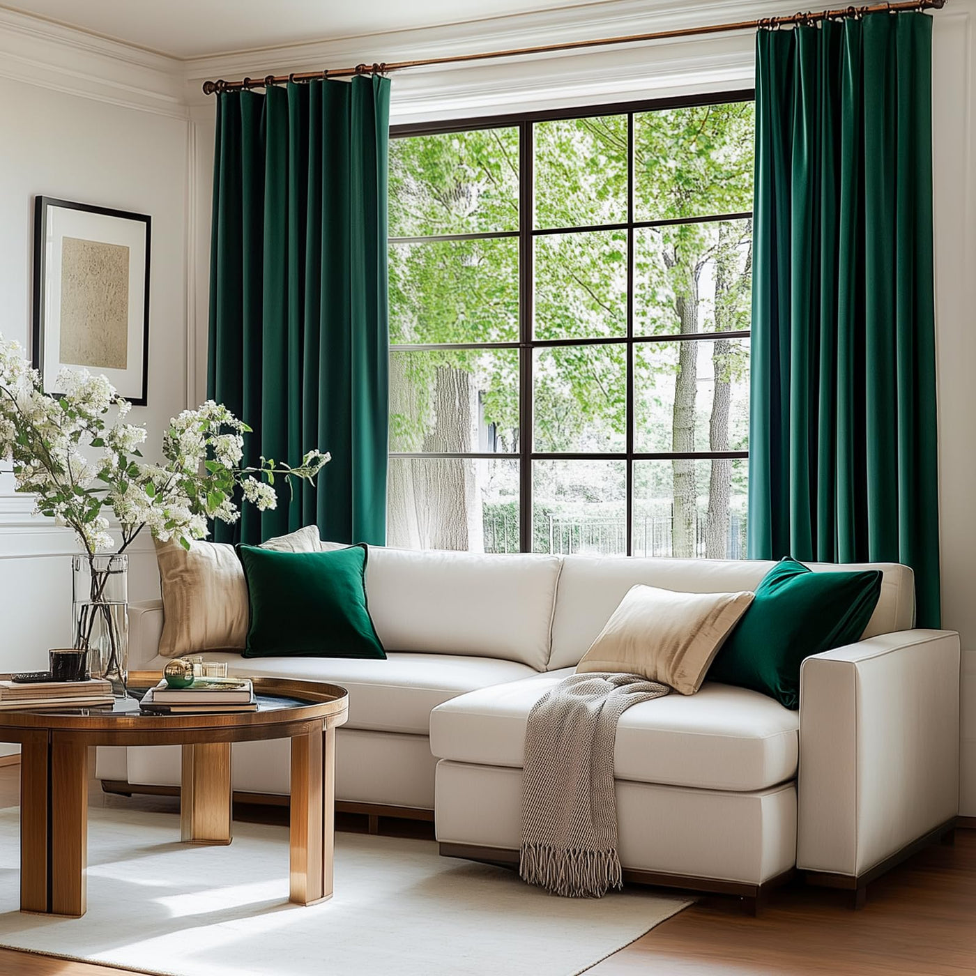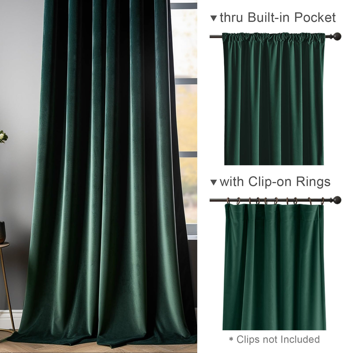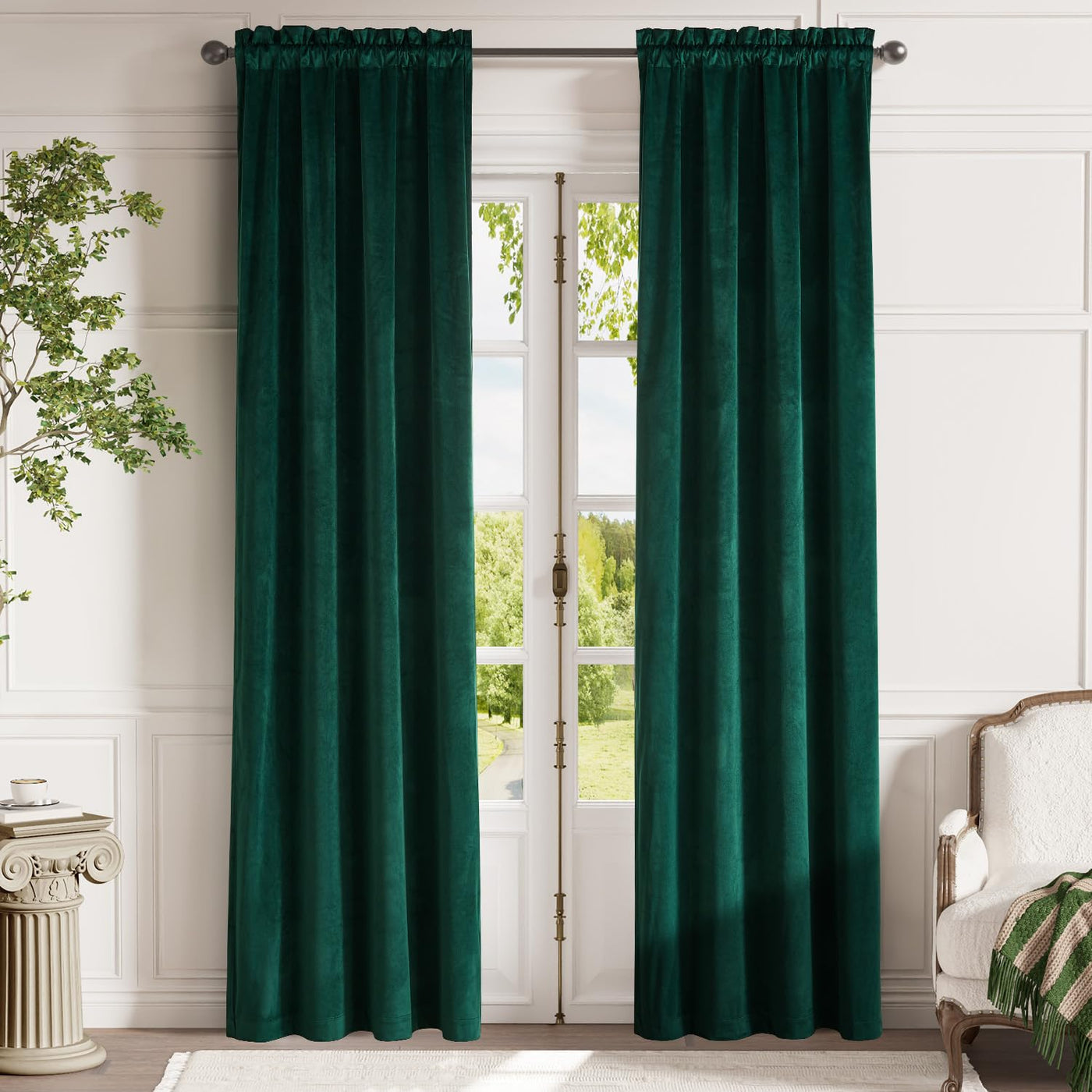 Lazzzy Velvet Curtains Emerald Green Room Darkening Drapes For Bedroom Living Window Treatments Luxury Rod Pocket 90 Inches Long 2 Panels, W42 X L90