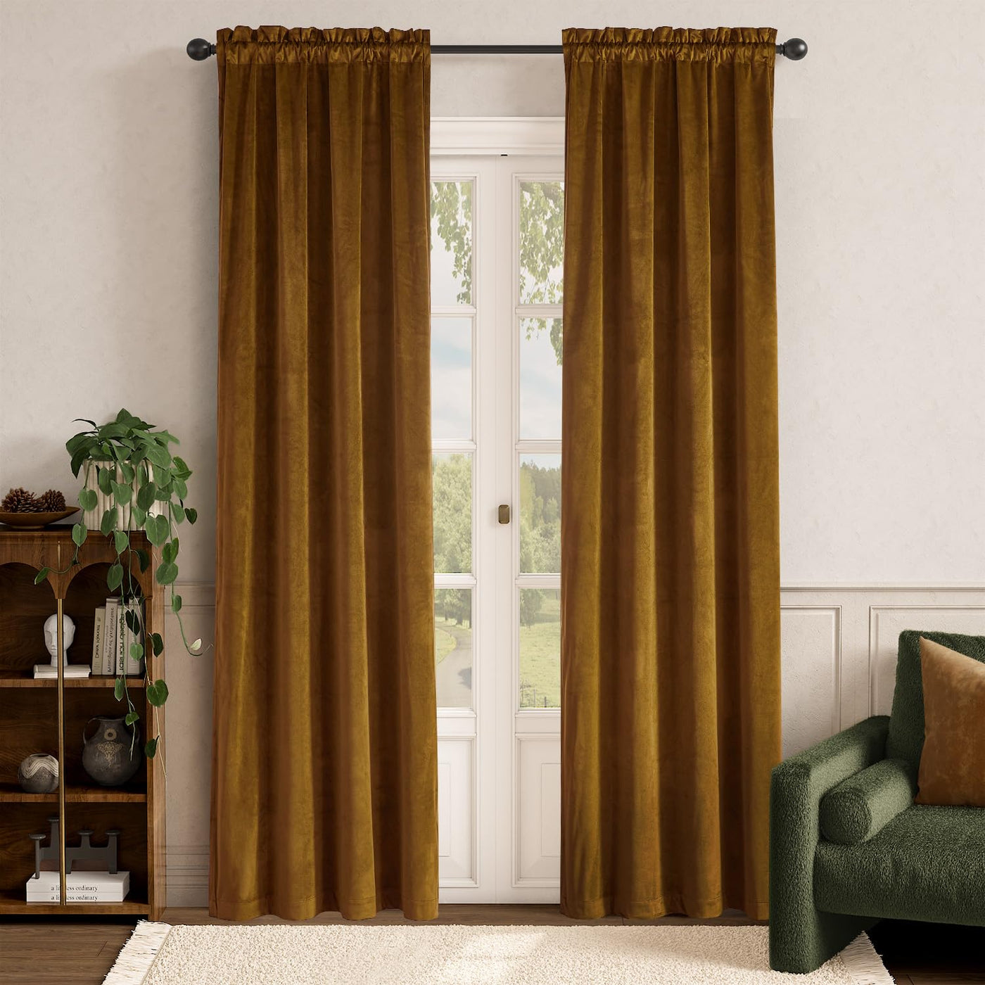 Lazzzy Velvet Curtains Glod Brown Thermal Insulated Drapes For Bedroom Living Room Darkening Window Treatments Luxury Rod Pocket 90 Inches Long 2 Panels, W42 X L90