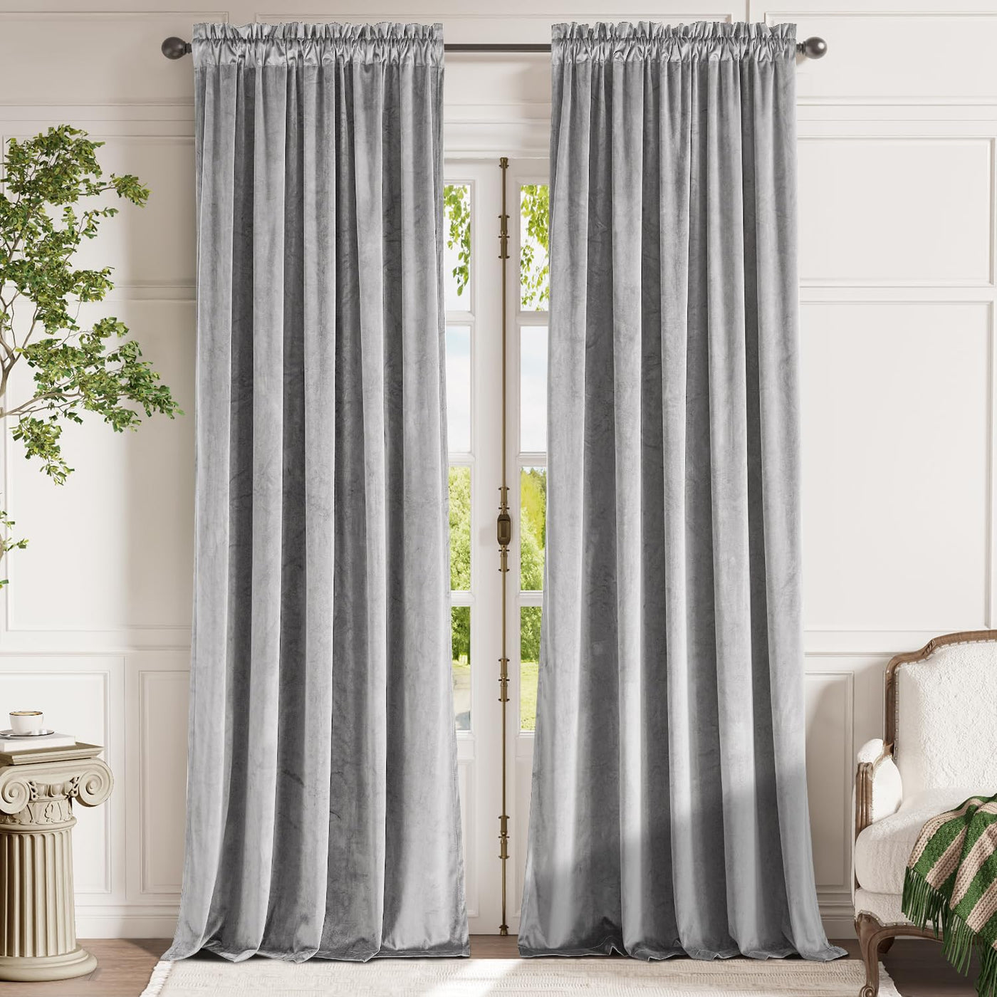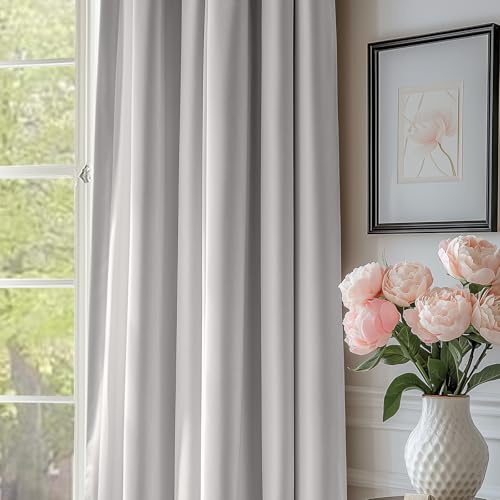 Lazzzy Velvet Curtains Light Gray Thermal Insulated Curtains Soundproof Noise Reducing Drapes For Bedroom Living Room Darkening Privacy Home Decor Rod Pocket 108 Inch Length 2 Panels