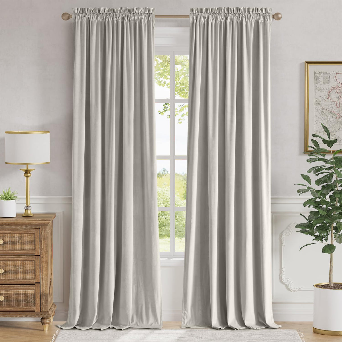 Lazzzy Velvet Curtains Oatmeal Room Darkening Thermal Insulated Curtains 108 Inch Length Soundproof Noise Reducing Drapes For Bedroom Living Privacy Home Decor Rod Pocket, 2 Panels