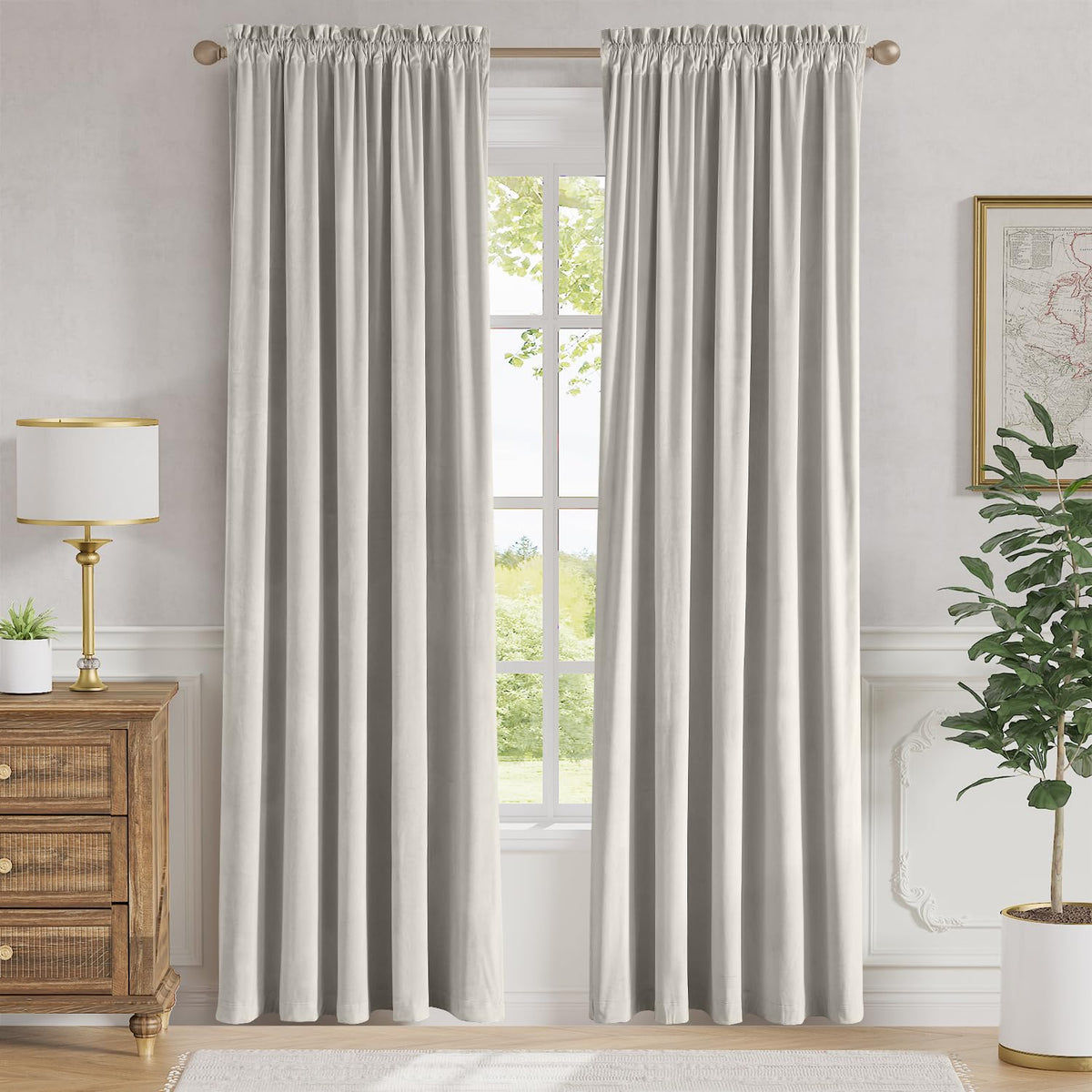 Lazzzy Velvet Curtains Oatmeal Room Darkening Thermal Insulated Curtains 84 Inch Length Soundproof Noise Reducing Drapes For Bedroom Living Privacy Home Decor Rod Pocket, 2 Panels
