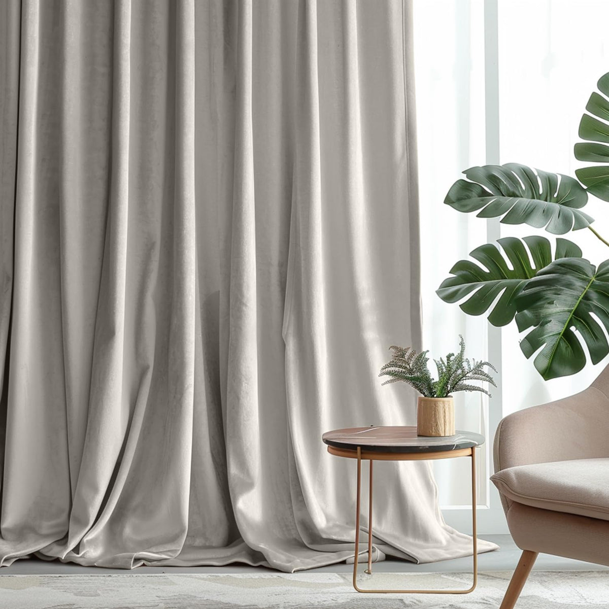 Lazzzy Velvet Curtains Oatmeal Room Darkening Thermal Insulated Curtains 90 Inch Length Soundproof Noise Reducing Drapes For Bed