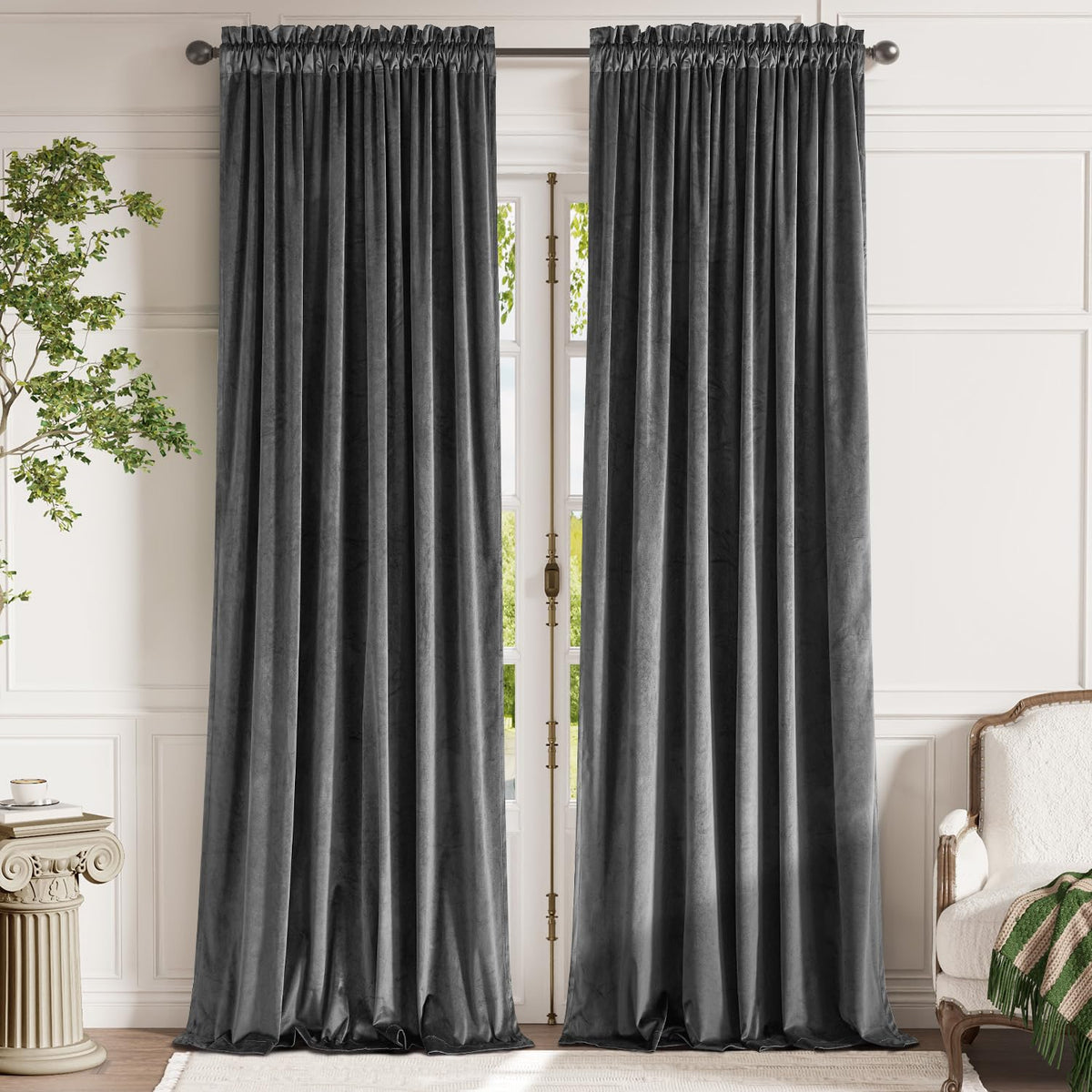 Lazzzy Velvet Grey Blackout Curtains 108 Inches Long Thermal Insulated Drapes For Bedroom Living Room Darkening Window Treatment