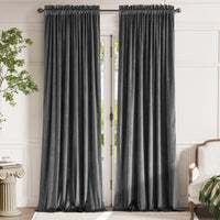 Q: What are the dimensions of the curtain panels?A: Each pair of Lazzzy Velvet Curtains measures 62 inches wide by 108 inches long, making them suitable for large windows in bedrooms or living rooms.
