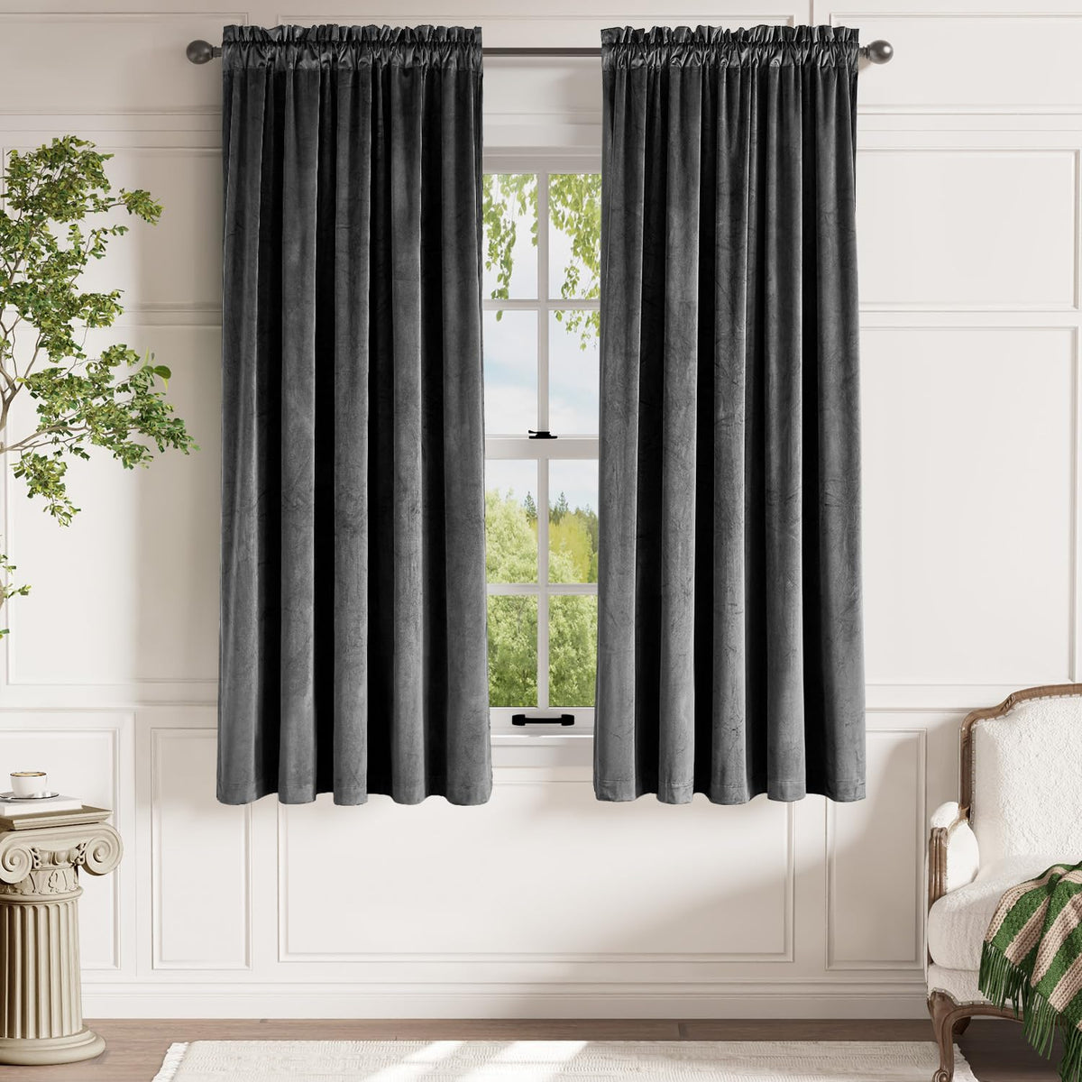 Lazzzy Velvet Grey Blackout Curtains 72 Inches Long Thermal Insulated Drapes For Bedroom Living Room Darkening Window Treatments Rod Pocket 2 Panels