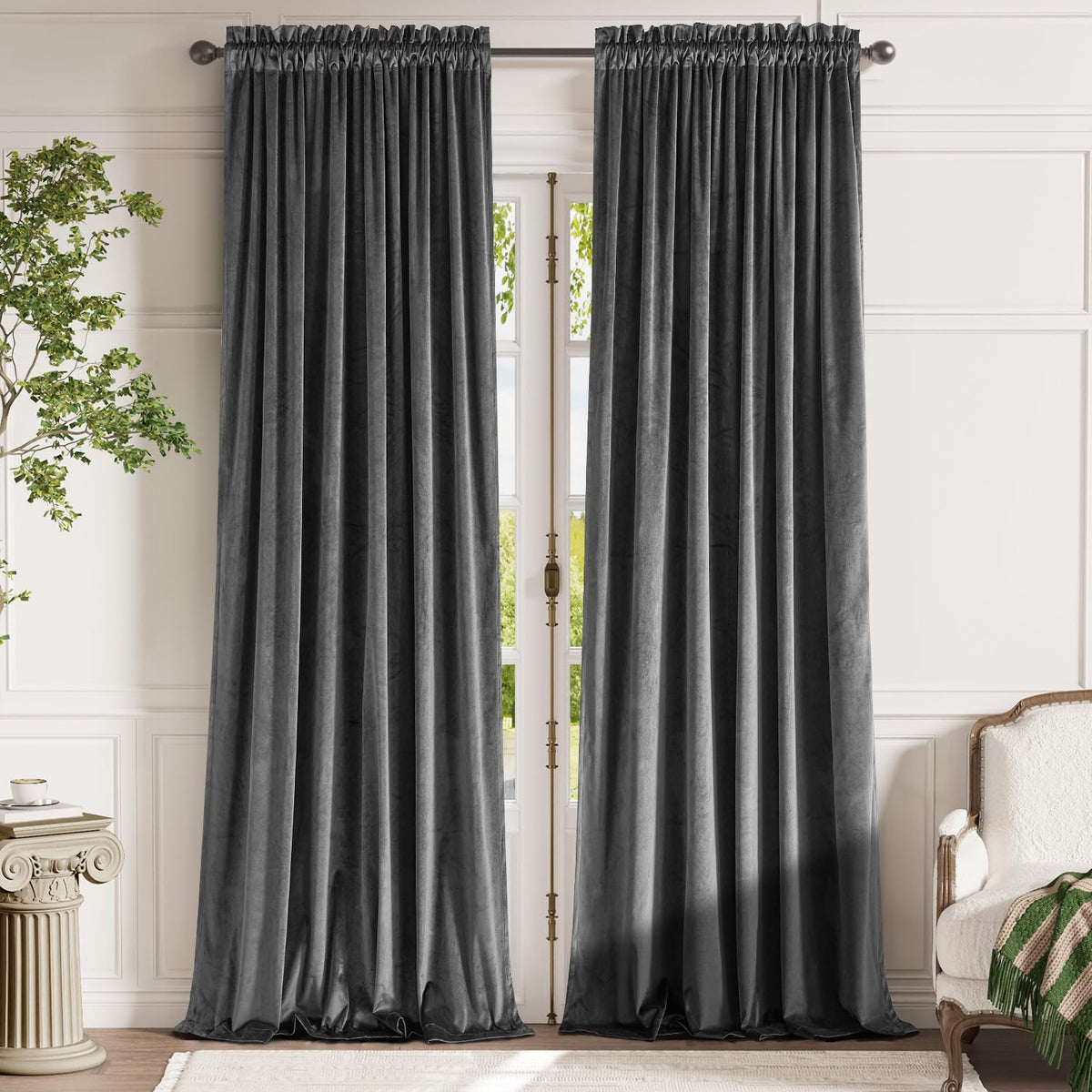 Lazzzy Velvet Grey Blackout Curtains 96 Inches Long Thermal Insulated Drapes For Bedroom Living Room Darkening Window Treatments Rod Pocket 2 Panels, W62 X L96