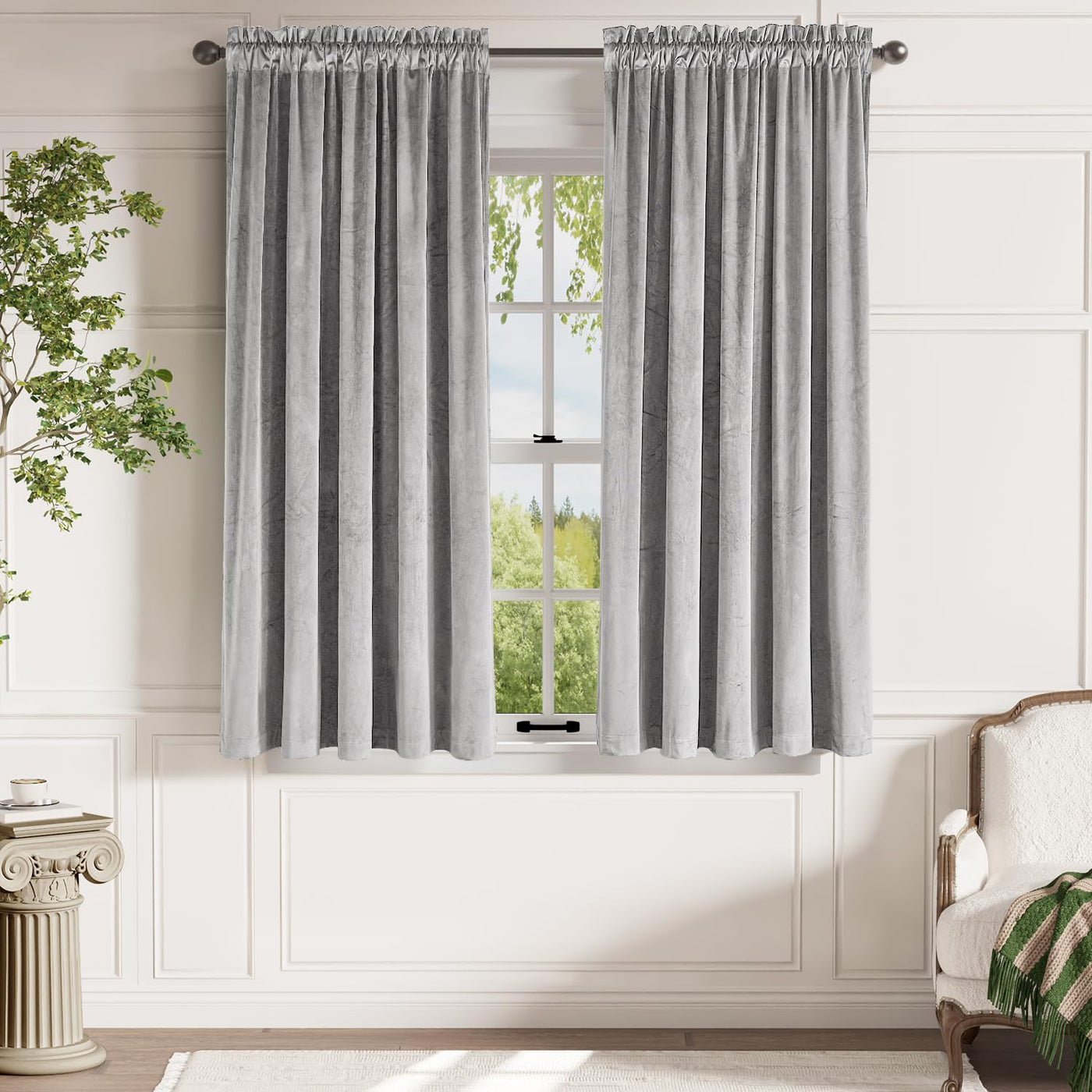 Lazzzy Velvet Light Gray Curtains 63 Inches Long Thermal Insulated Drapes For Bedroom Living Room Darkening Window Treatments Rod Pocket 2 Panels
