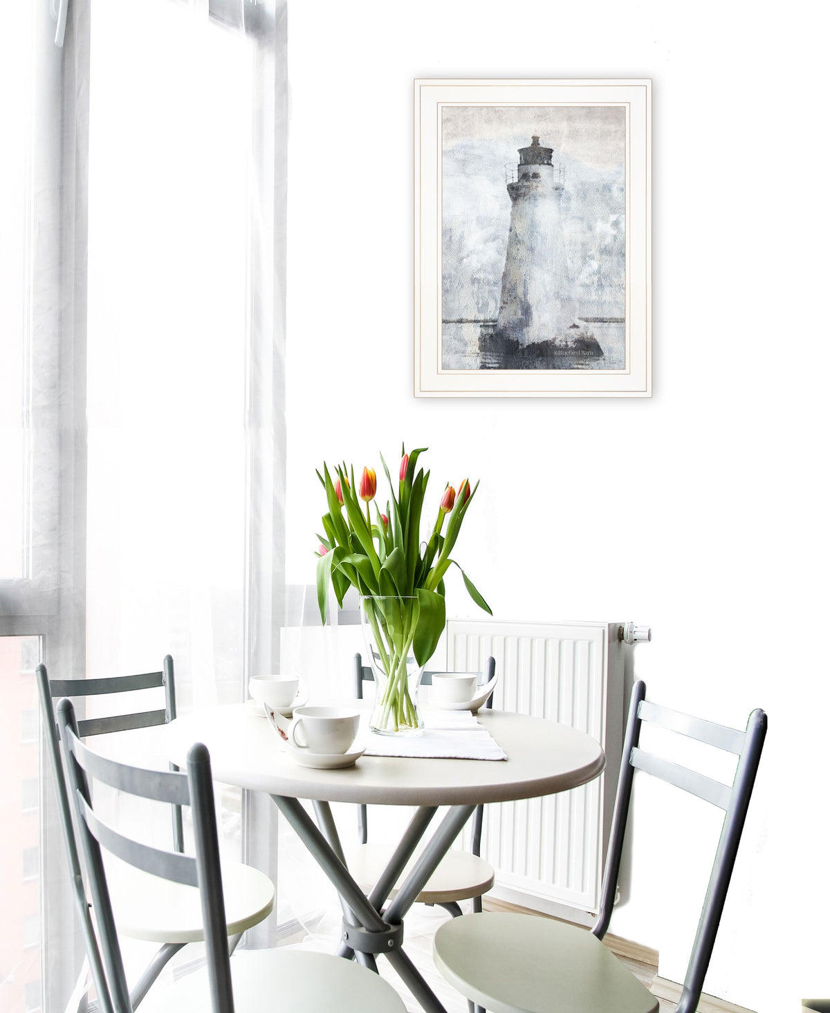 The lighthouse 1 white framed print wall art is the perfect decorative accessory for your home. This print is a visual artistic expression that allows you to decorate your space in reproduced for you on paper, this hanging decorative accent will be a trendy and fashionable way to dress your walls. Adding this hanging wall art to your space to make your room feel more finished and attractive. Utilize this opportunity to create a focal point in the room with this wonderful wall decor tion. 19' H x 15' W x 1' D