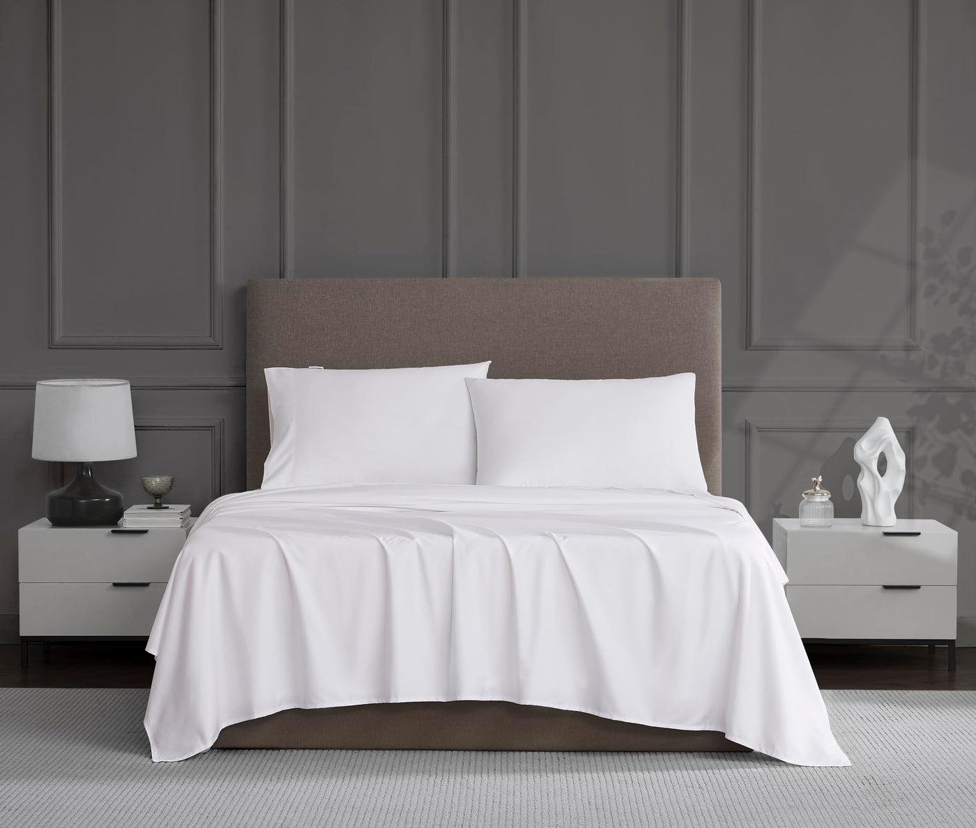 Get The Rest You Deserve With The Linen Closet 1200 Thread Count Hotel Luxury 4-Piece Sheet Set. Made From A Fabric Blend That Features The Moisture-Wicking Durability Of Polyester And The Softness Of Cotton, This High-Performance Sheet Set Is Luxurious And Chic. Each Set Includes A Fully-Elasticized Fitted Sheet With True Grip Technology, A Flat Sheet And Two Standard-Size Pillowcases, And These Gorgeous Sheets Soften More And More After Each Wash. Available In A Full Range Of Sizes And An Assortment Of Solid Colors, The Linen Closet 1200 Thread Count Hotel Luxury 4-Piece Sheet Set Is A Surefire Way To Ensure You Wont Be Counting Sheep.