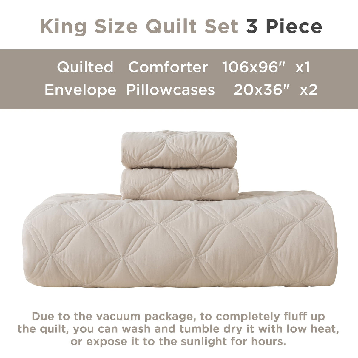 Litanika Beige King Size Quilt Bedding Set - Summer Lightweight Comforter Bedspreads & Coverlets - Boho Farmhouse Bedding Cover