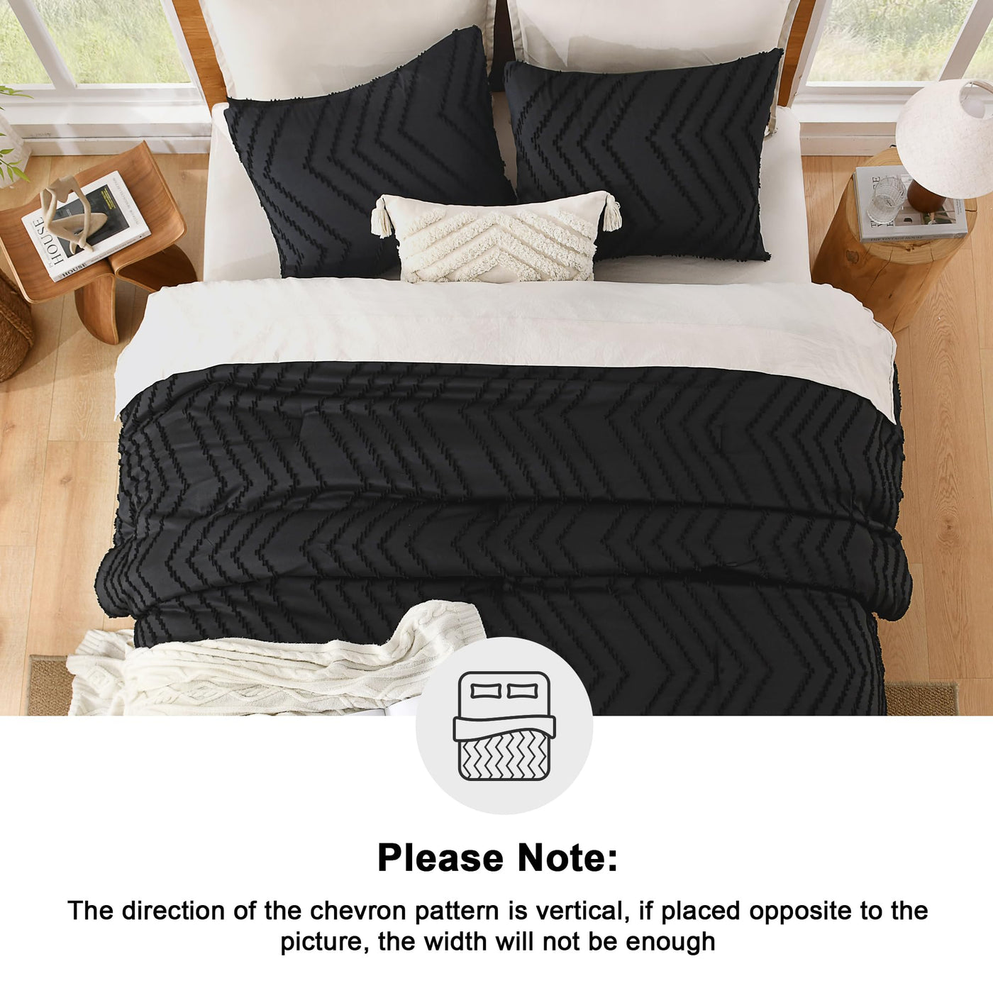 Litanika Black California King Comforter Set, 3 Pieces Cal King Oversized Chevron Tufted Solid Bedding Comforter Sets, Fluffy Be