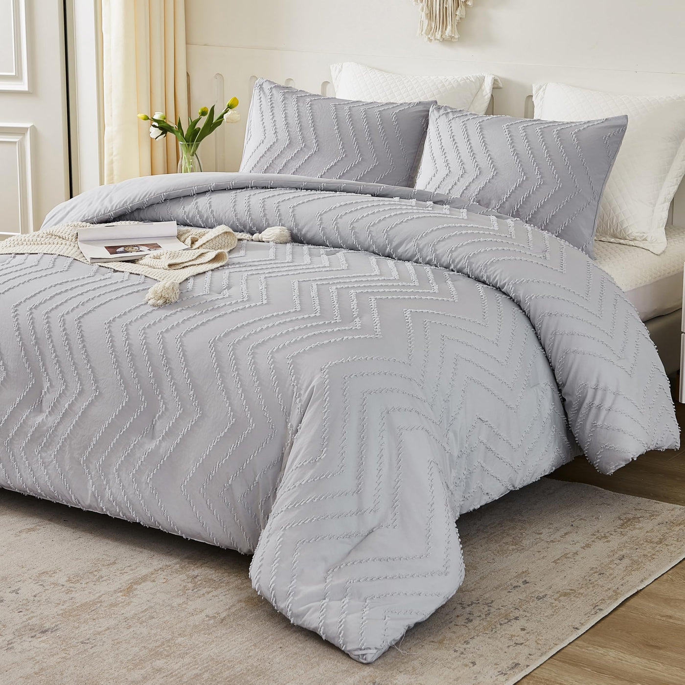 Litanika Light Grey California King Comforter Set, 3 Pieces Cal King Oversized Chevron Tufted Bedding Comforter Sets, Fluffy Bed