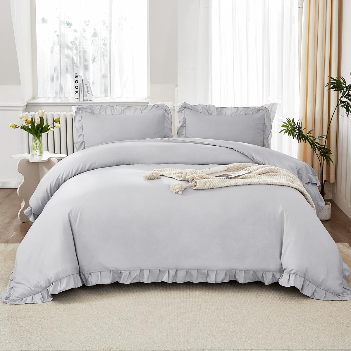 Q: What makes this comforter set a good gift choice?A: The Litanika comforter set features an elegant design with cute ruffle trim, making it an enchanting gift for homeowners who appreciate graceful decoration. It’s perfect for special occasions like weddings or housewarming parties.