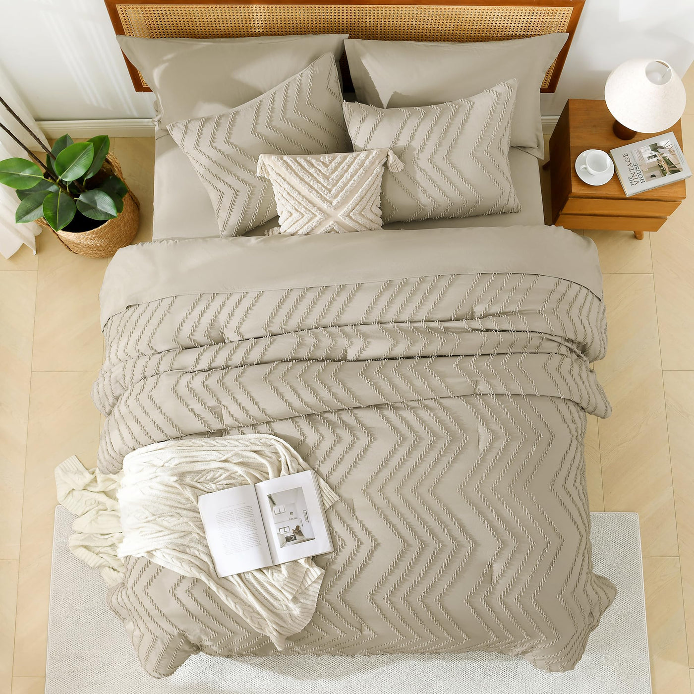 Litanika Light Hazel Queen Size Comforter Set With Sheets - 7 Pieces Bed In A Bag Queen Boho Tufted Complete Beddding Sets With