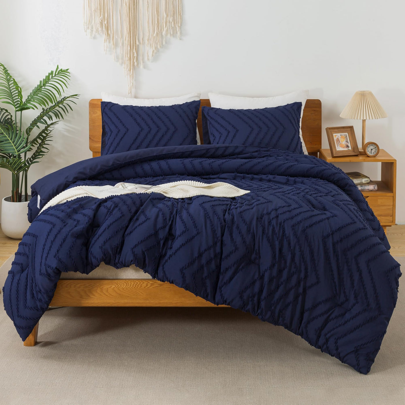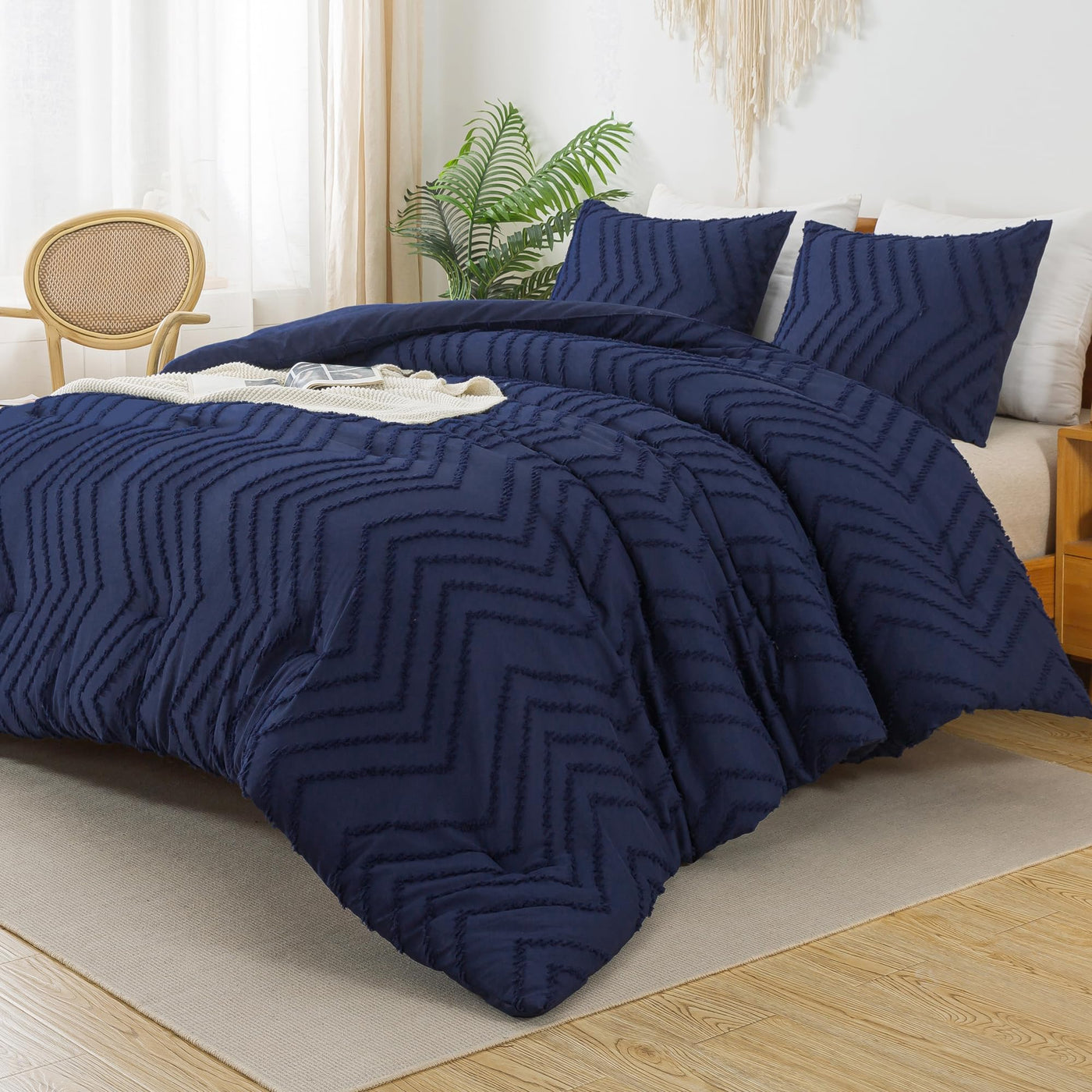 Litanika Navy Blue California King Comforter Set, 3 Pieces Cal King Oversized Chevron Tufted Bedding Comforter Sets, Fluffy Bed
