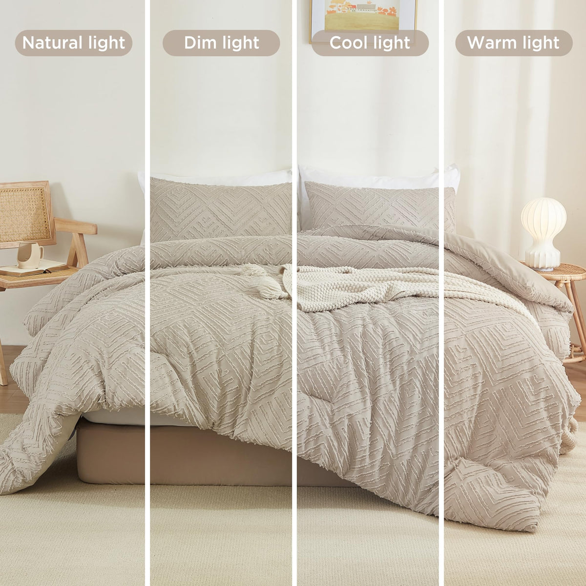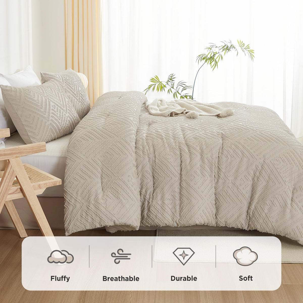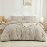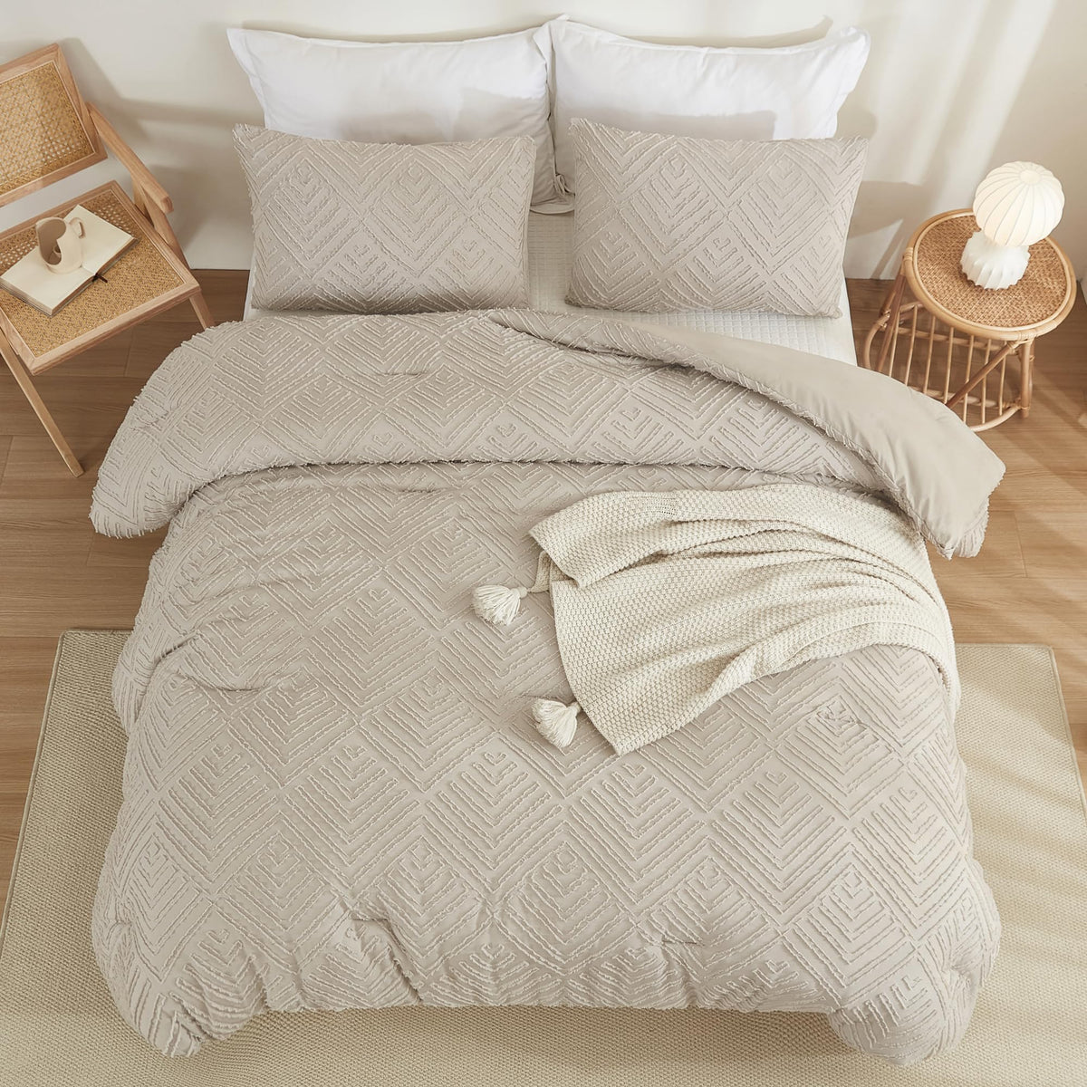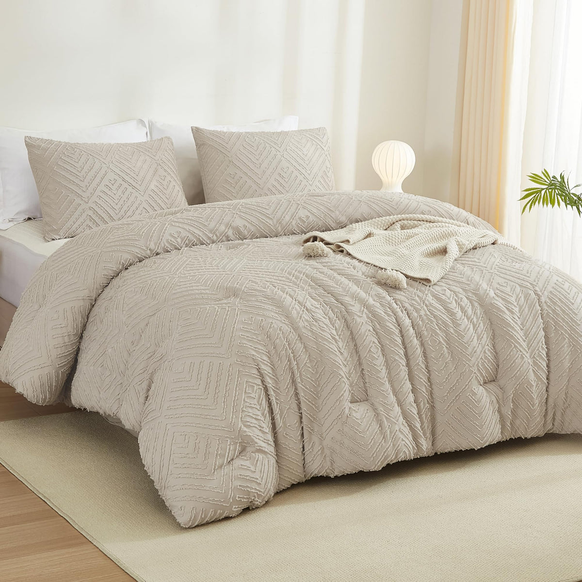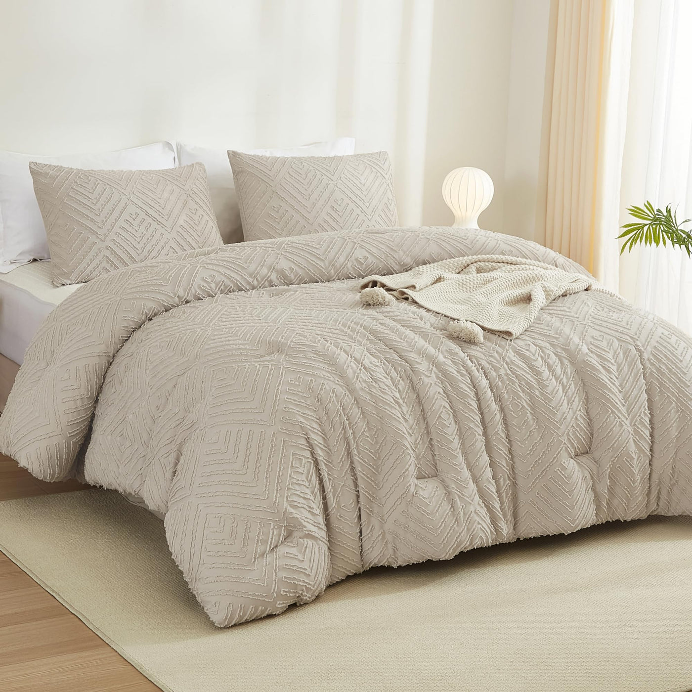 Litanika Oatmeal King Size Comforter Set, 3 Pieces Tufted Boho Farmhouse Bedding Comforter Sets, Lightweight Fluffy Comforter Be