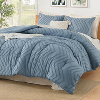 Litanika Comforter Super King Plus Size Set Grayish Blue, 3 Pieces Chevron Tufted Solid Bedding Comforter Sets, Fluffy Bed Set