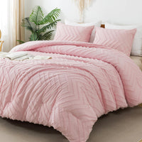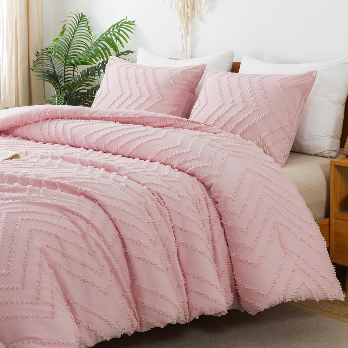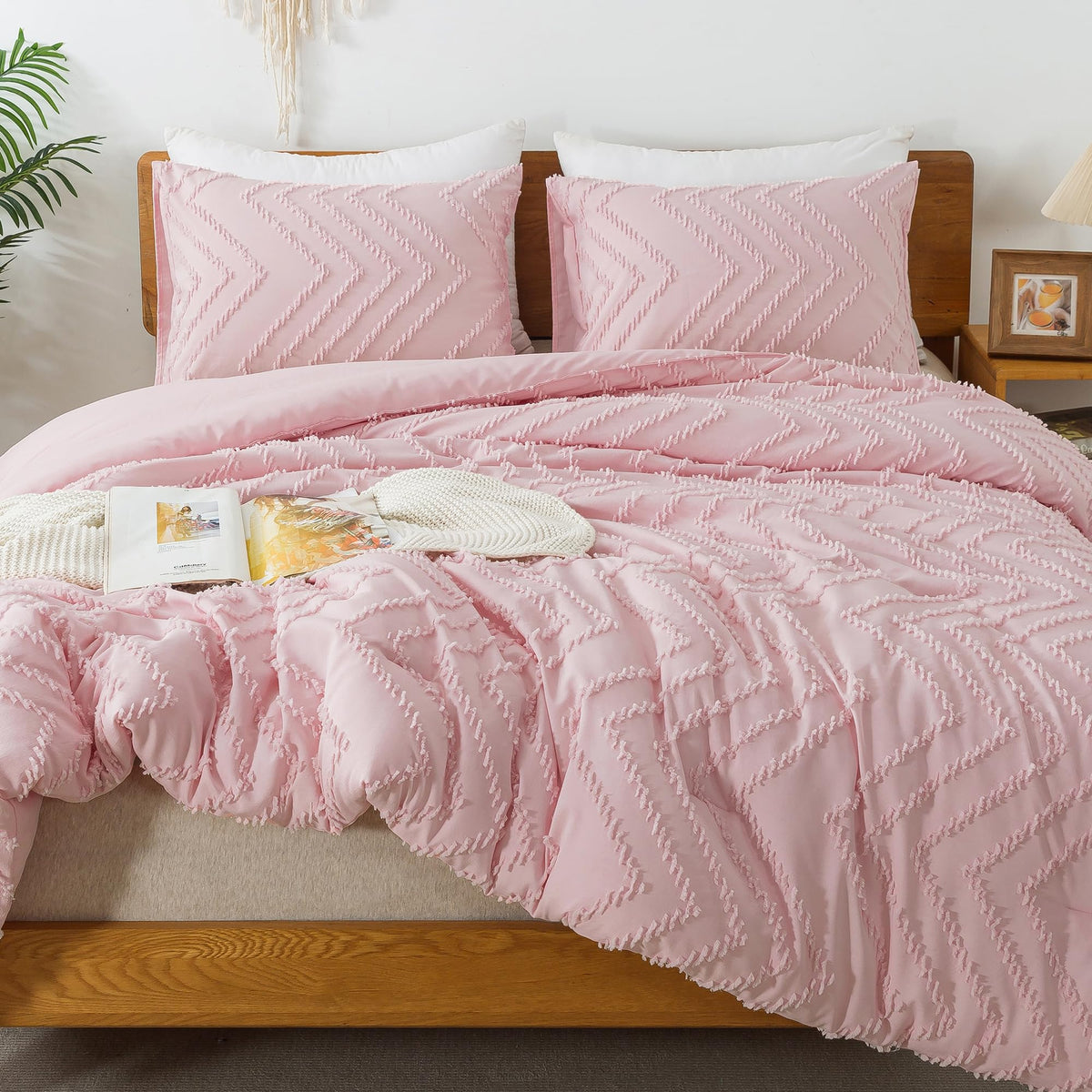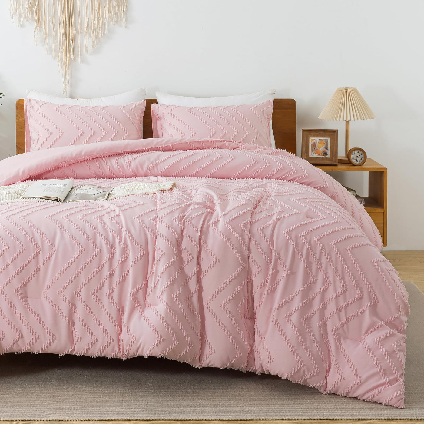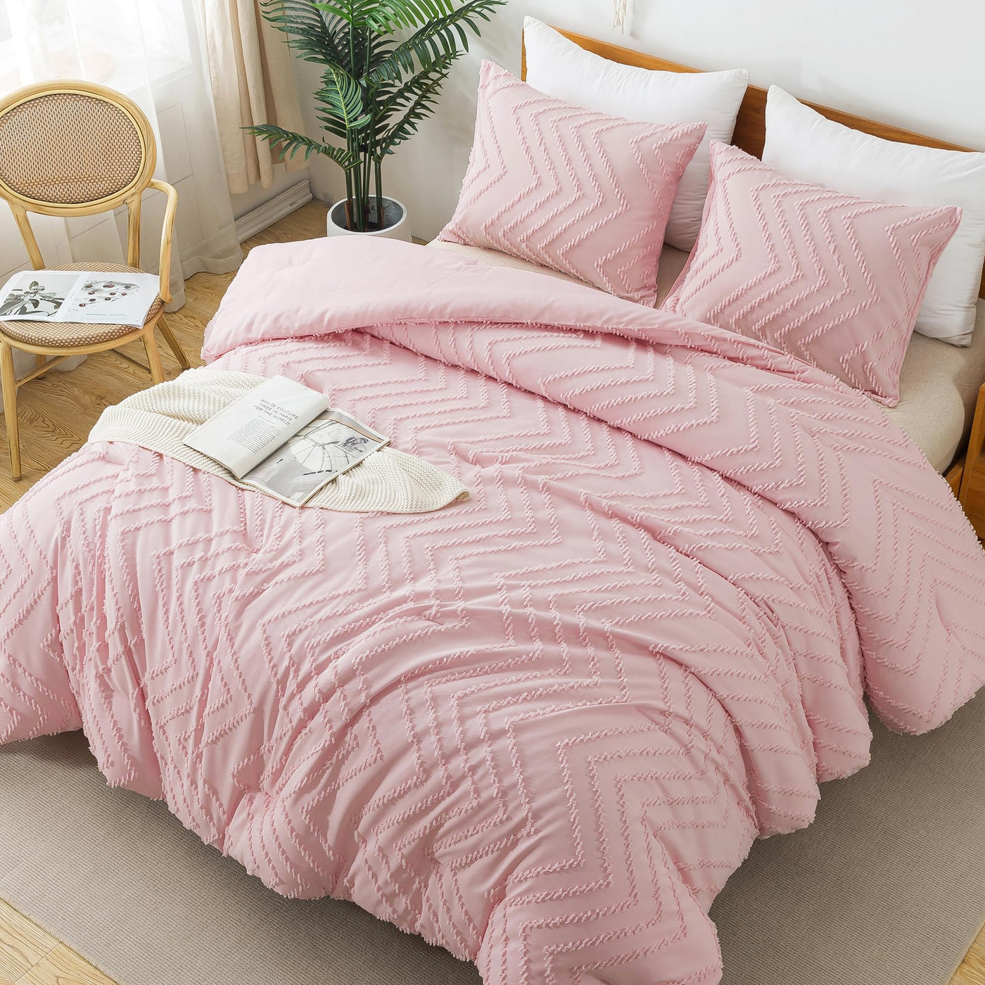 Litanika Pink Queen Size Comforter Sets, 3 Pieces Lightweight Chevron Tufted Bedding Comforter Set, Fluffy Down Alternative Comf