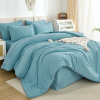 Litanika Queen Comforter Set Grayish Teal - 7 Pieces Bed In A Bag Queen Beddding Comforter Sets, Solid Lightweight Bed Set With