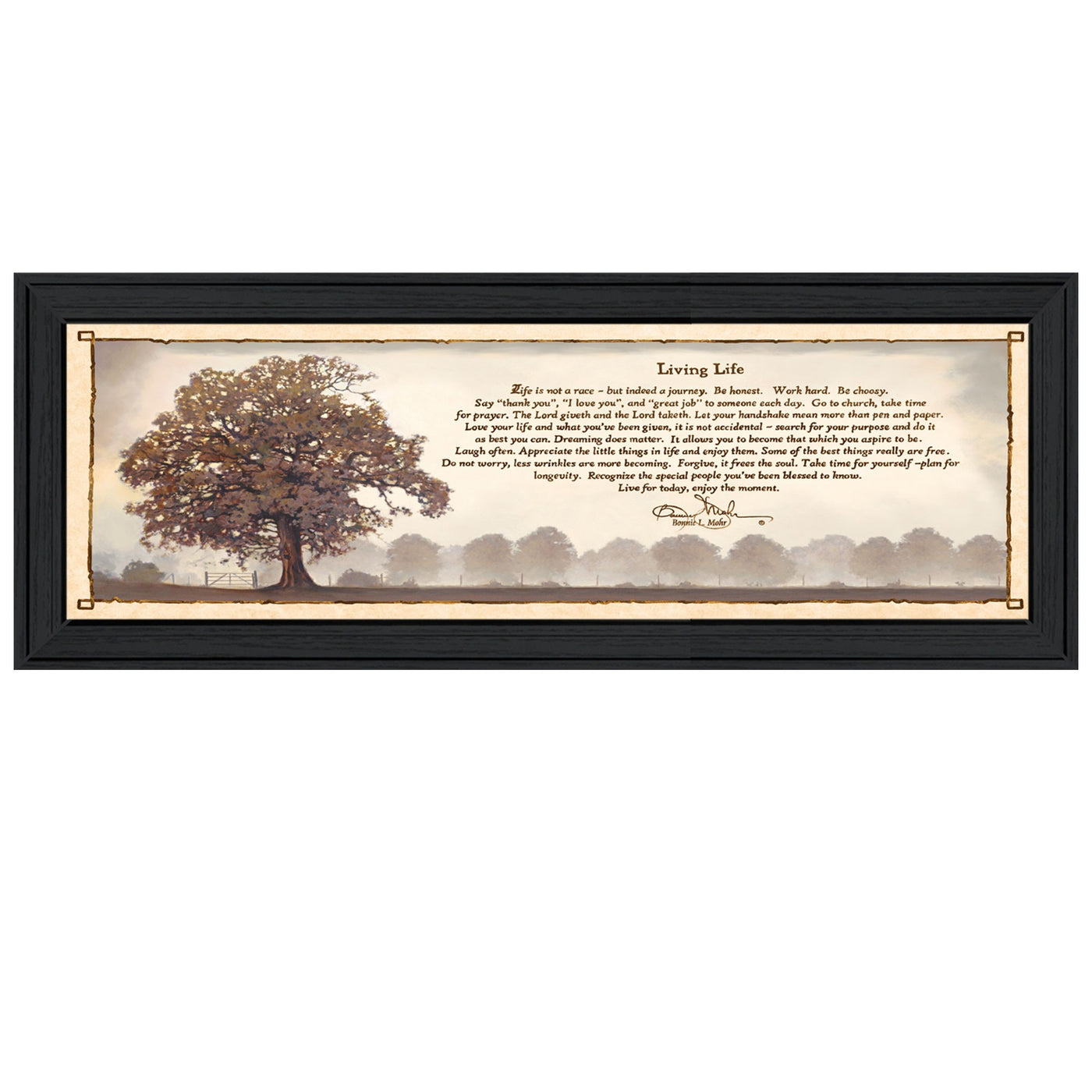 The living life 11 black framed print wall art is the perfect decorative accessory for your home. This print is a visual artistic expression that allows you to decorate your space in style. Reproduced for you on paper, this hanging decorative accent will be a trendy and fashionable way to dress your walls. Adding this hanging wall art to your space to make your room feel more finished and attractive. Utilize this opportunity to create a focal point in the room with this wonderful wall decor tion. 15' H x 39' W x 1' D