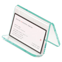 Business Card Holder Offers A Durable, Lightweight Design With Polished Edges. Smooth, Curved Edges Feature A Hint Of Green To Emulate The Look Of Real Glass. Business Card Holder Accommodates Approximately 70 Cards And Is Made Of Durable Acrylic.
