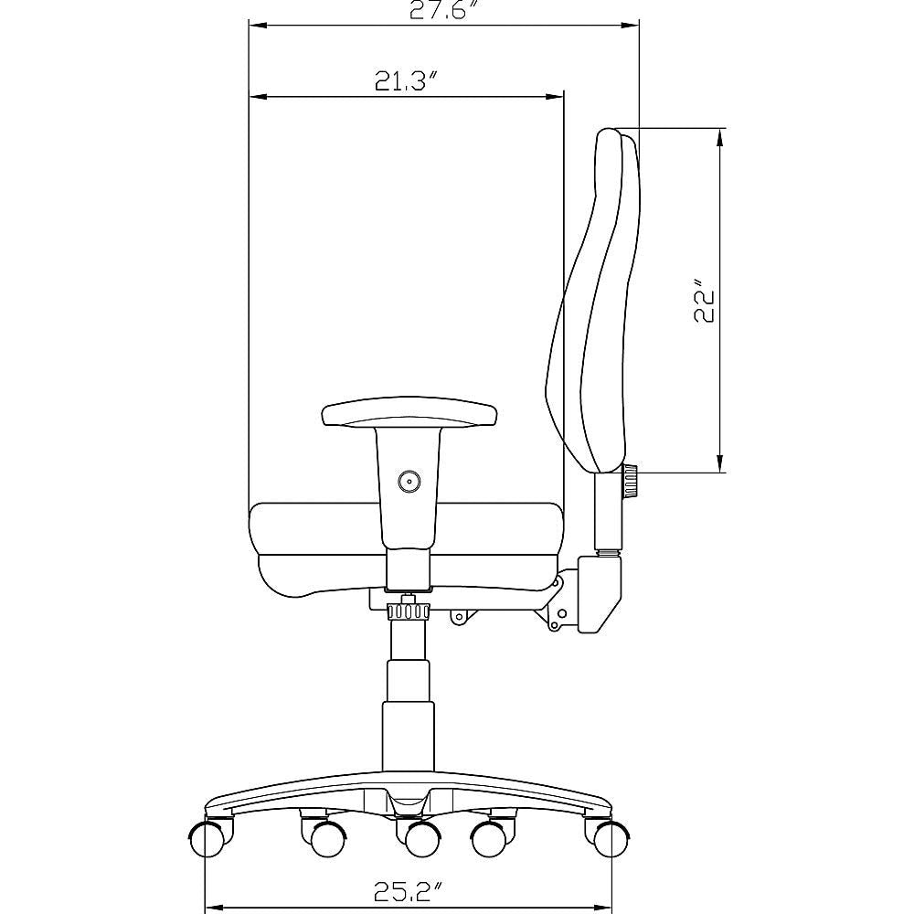 Deep molded seat and back of this high-back, multi-task chair provide added comfort. The chair also features pronounced lumbar support with 2" back height adjustment. Posture control allows pneumatic seat-height adjustment (18-9/10" to 22-2/5"), back-height adjustment, 360-degree swivel and asynchronous control. Adjustable height and width arms provide additional comfort. Chair is available in black frame only. The fabric is 100 percent acrylic. Abrasion rating is 30,000 cycles. The back measures 20-1/2" wide x 7" thick x 23" high. Chair offers a 225 lb. capacity.