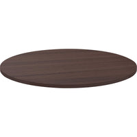 Elegant table can be used on its own or with other Lorell Essentials Series Wood Laminate Furniture that offers high-quality laminate construction and a contemporary design. It is ideal for a small meeting area in executive offices. Tabletop and base are sold separately. 1 thick tabletop features an Espresso laminate surface and 3mm PVC edgebanding. Attach tabletop to sturdy steel or matching laminate base (sold separately) with screws matched to T-Metal, predrilled holes. The base includes mounting hardware.