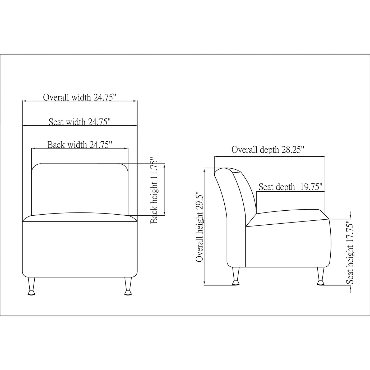 Armless Lounge Chair Provides Comfortable Seating And Is Part Of Lorell'S Fuze Modular Lounge Series That Supports The Mobile Lifestyle. This Series Includes Ways For Guests To Easily Power Their Mobile Lifestyle With A Power Outlet, Wi-Fi Plug And Two Usb Ports On The Sides Of The Square And End Lounge Chairs As Well As Atop The Connector Table Unit (All Sold Separately). This Lounge Chair Is Fully Upholstered In Black Leather And Has No Arms Or Power Outlets. It Fits Into Multiple Configurations That Are Ideal For Impromptu Collaboration, Reception And Lounge Areas. Four Brushed Aluminum Legs Offer Reliable Support. Design Also Includes A Supportive Back And Thick Cushion For The Seat. Seat Measures 24-3/4" Wide X 19-3/4" Deep X 17-3/4" High. Back Size Is 24-3/4" Wide X 13" High From Seat. Weight Capacity Is 250 Lb.