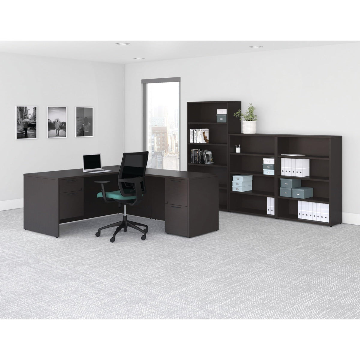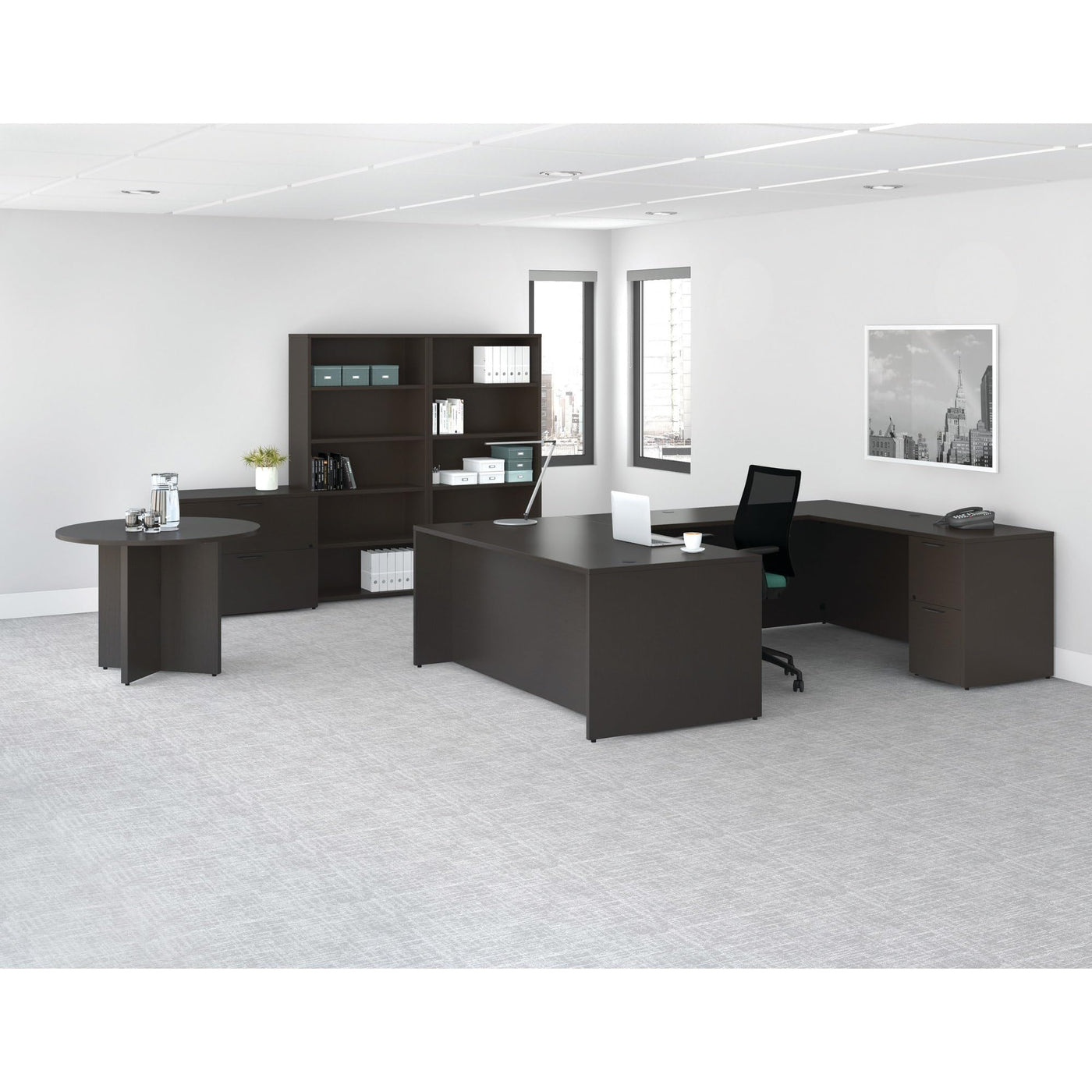 Prominence 2. 0 Series Offers An Elegant Design That Is Perfect For Your Executive Office Suites. Durable, Espresso Laminate Surface Is Mar-Resistant, Burn-Resistant And Impact-Resistant To Withstand Hectic, Daily Work Life. All Items Are Shipped Fully Assembled Except The Bridge And Conference Tables. The 1" Thick Tops Feature Matching 3Mm Edge Banding And Are Manufactured With 45 Lb. Density Particleboard. All Surfaces Are Finished On Both Sides With High-Performance, Thermally Fused Melamine. Pedestals Have Locking Drawers To Secure Files And Supplies. Box And File Drawers Have 100 Lb. Full-Suspension, Ball-Bearing Slides. Lateral Files Feature An Anti-Tip Mechanism; Full-Suspension, Ball-Bearing Slides; And Locks For Security. All Units Have 3/4" Adjustable Glides To Remain Level On Uneven Surfaces. Grommets Are Standard On Returns And Bridges For Convenient Cord Management. All Desks Standard With Full-Height Modesty Panels For Privacy.