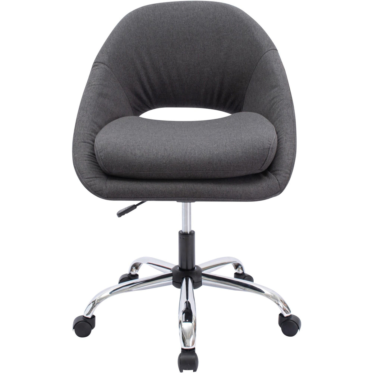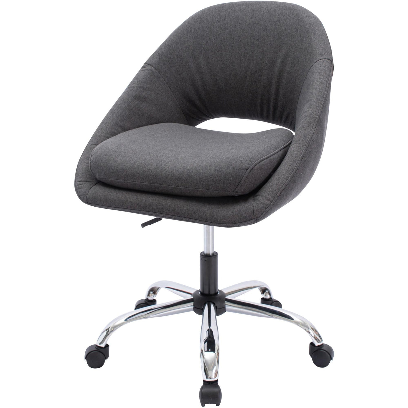 With the comfort of resimercial styling, this Lounge Chair doubles as a task chair when needed. It offers the functions you need at work with a thickly cushioned seat and low back you enjoy at play. Both seat and back are upholstered in neutral gray fabric. Adjust the seat height from 19-7/8" to 23-2/9". The 360-degree swivel cylinder lets you move from desk to meeting mode. Sturdy, chrome metal base is equipped with five dual-wheeled casters for easy moving. Seat measures 18-1/2" wide x 19-3/4" deep. Weight capacity is 275 lb.