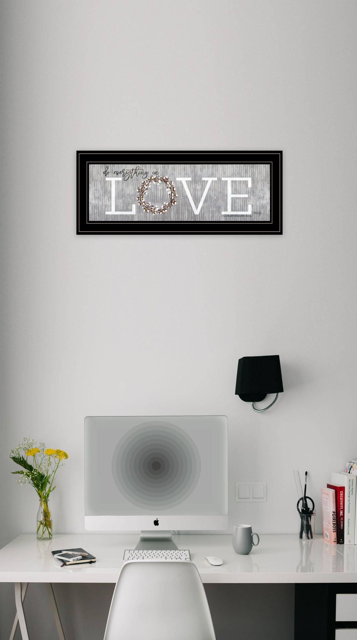 The love - do everything in love 1 black framed print wall art is the perfect decorative accessory for your home. This print is a visual artistic expression that allows you to decorate your space in restyle. Made for you on paper, this hanging decorative accent will be a trendy and fashionable way to dress your walls. Hang on your wall to add up to date fashion and decoration. Instantly liven up your space with this art that brings color and dimension to your walls. 11' H x H x H 27' W x 1' D