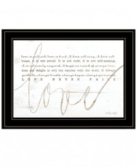 Add an air of fashion to your room and rejuvenate the space with this love never fails 3 black framed print wall art. This print is a visual artistic expression that allows you to decorate your space in style. Reproduced for you on wood, this hanging decorative accent will be a trendy and fashionable way to dress your walls in a rustic and modern farmhouse vibe. Hang on your wall to add up to some date fashion and Utilize this opportunity to create this opportunity. a focal point in the room with this fabulous wall decor option. 15' H x 19' W x 1' D