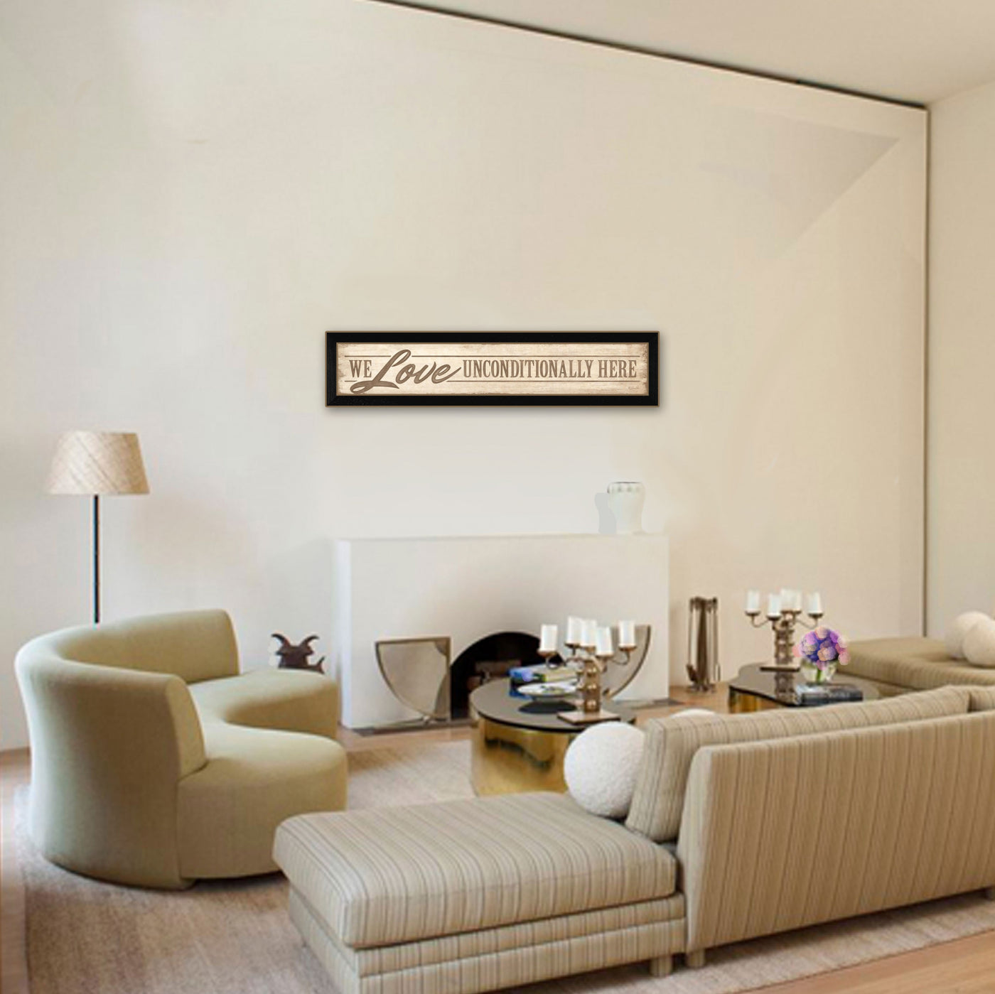 This love unconditionally 2 black framed print wall art will add a beautiful decorative accent to your decor. This print is a visual artistic expression that allows you to decorate your space in reproduced for you on paper, this hanging decorative accent will be a trendy and fashionable way to dress your walls. Hang on your wall to add some up to date fashion and decoration. Instantly liven up your space with this art that brings color and dimension to your walls. 8' H x 38' 'W x 1' D