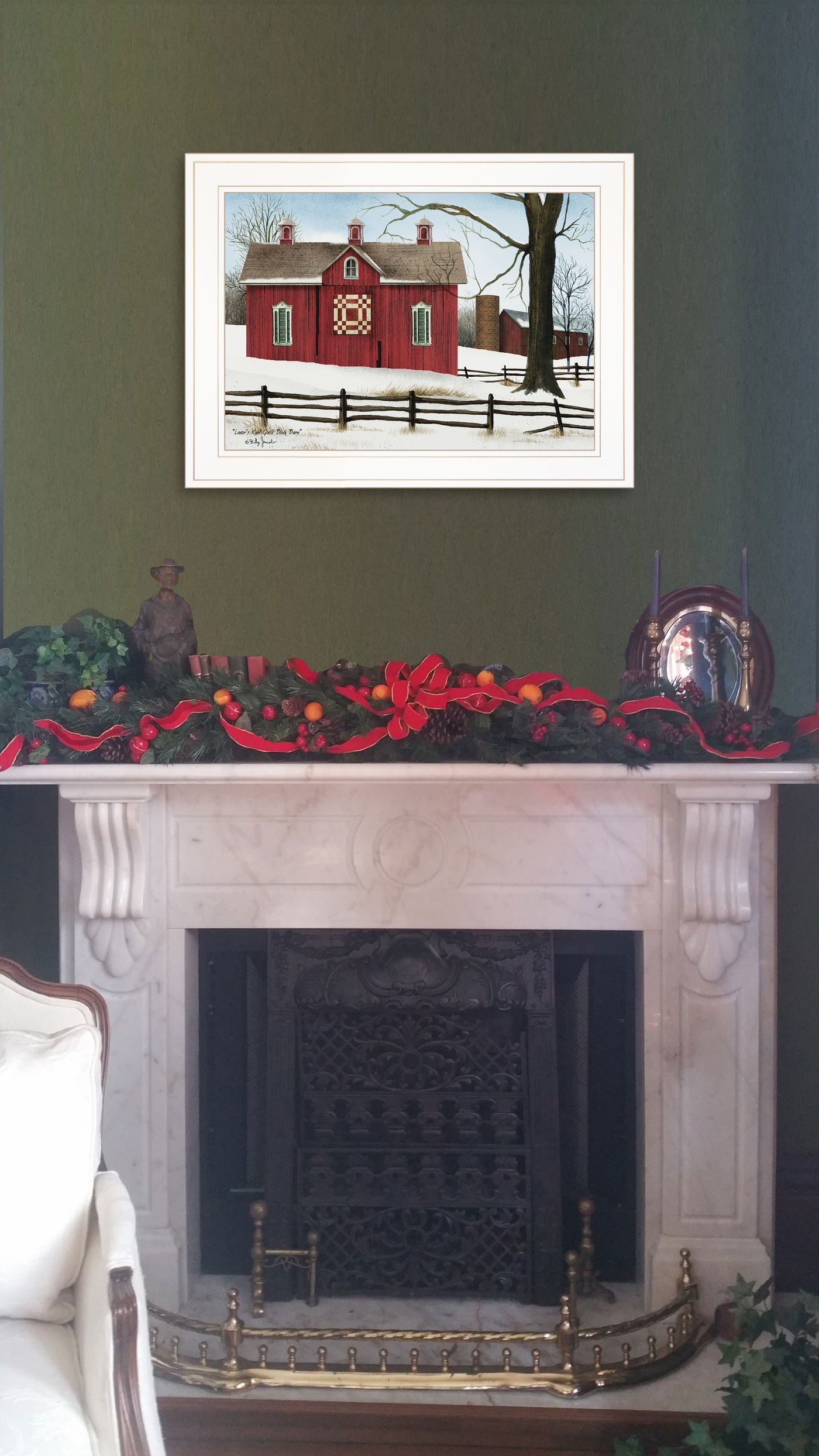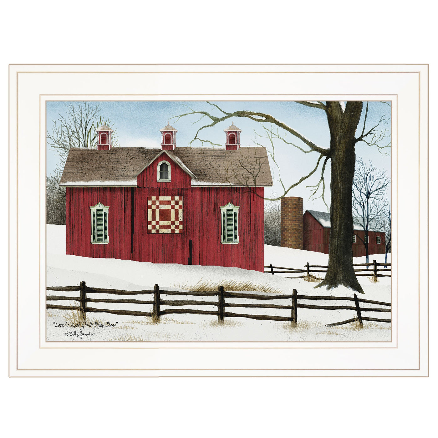 Bring some sizzle to your space with this eye-catching lovers knot quilt block red barn 1 white framed print wall art. This print is a visual artistic expression that allows you to decorate your space in style. Reproduced for you on paper, this hanging accent will be a trendy and fashionable way to dress your hang on your wall to add some up to date fashion and decoration. This opportunity to create a focal point in the room with this wonderful wall decor tion. 15' H x 19' W x 1' D