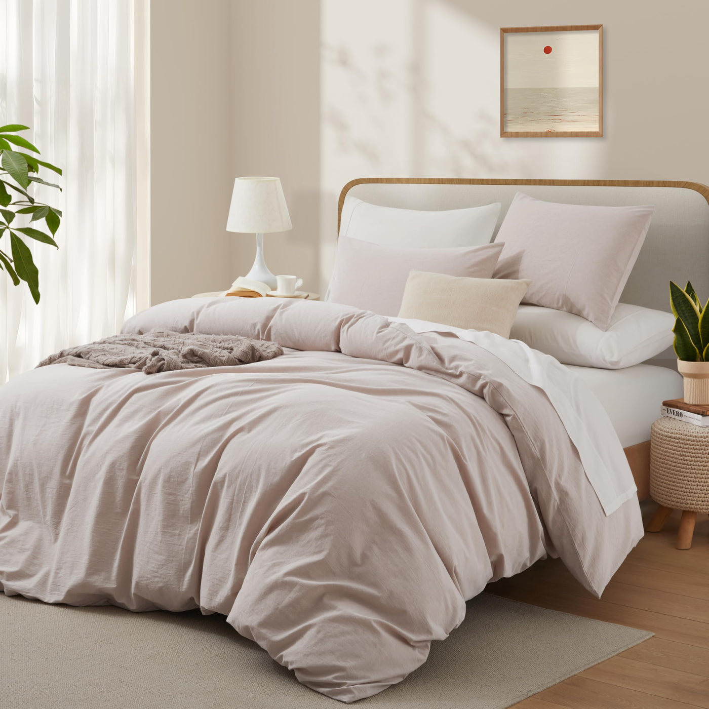 Lovque Linen Light Grey Duvet Cover Full Size, 100% Washed Cotton Linen Like Bedding Set With Zipper Closure (No Comforter), 80X