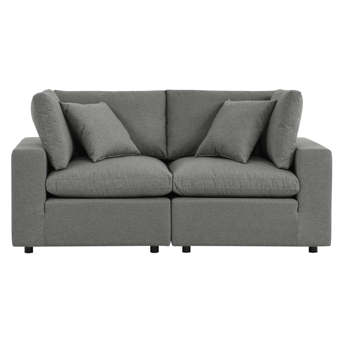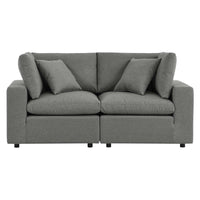 Create your own personal oasis with the luxurious and inviting Commix outdoor loveseat. Its sleek design and spacious profile make it a stunning addition to any porch, patio, or poolside area. This loveseat is perfect for soaking up the sun or getting lost in a captivating book, thanks to its generously padded cushions that are covered in water-repellent and UV-resistant fabric. Crafted with durability in mind, it features a powder-coated aluminum frame and non-marking foot caps to protect your flooring. With a weight capacity of 300 lbs per seat, this loveseat is built to accommodate guests and provide ultimate comfort. The set includes two Commix overstuffed corner chairs, creating a perfect seating arrangement for outdoor entertaining or simply relaxing in the warm weather.