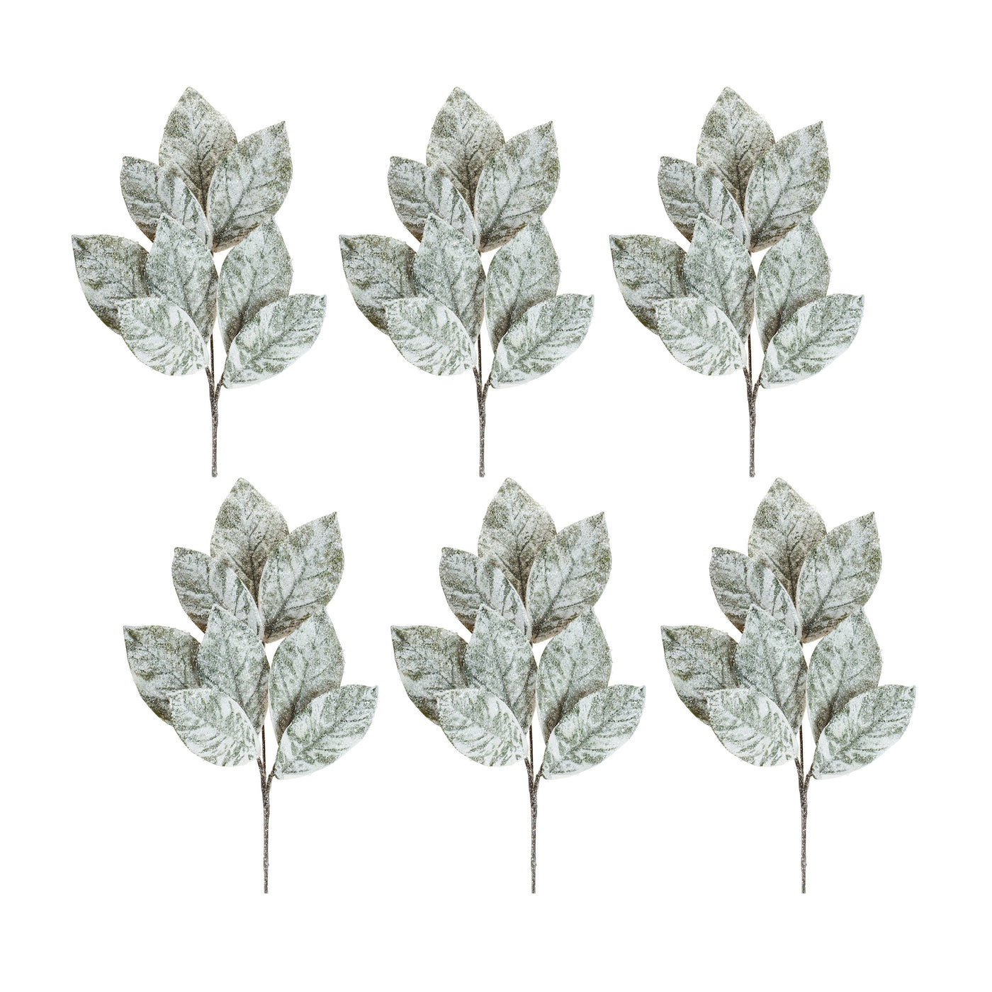 Magnolia Leaf Spray 32.5''H Polyester Add a pop of natural color to your home with this beautiful Magnolia Leaf Spray. Featuring 6 pieces, this set's varigated Magnolia Leaf foliage is sure to fit in with any style of home decor. The quality polyester leaves are sure to last for seasons to come. Display the set in a vase or decorative container to complete the look. Measures 10 x 1 x 32.5 each Primary Materials: Polyester, Acrylic Reccommended for indoor and outdoor covered use only